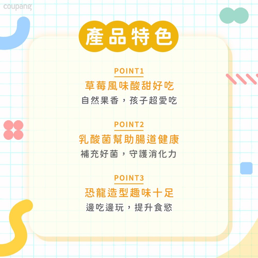 - 草莓風味酸甜可口,口感酥脆,造型可愛的恐龍造型,讓寶寶愛不釋手,一口接一口。