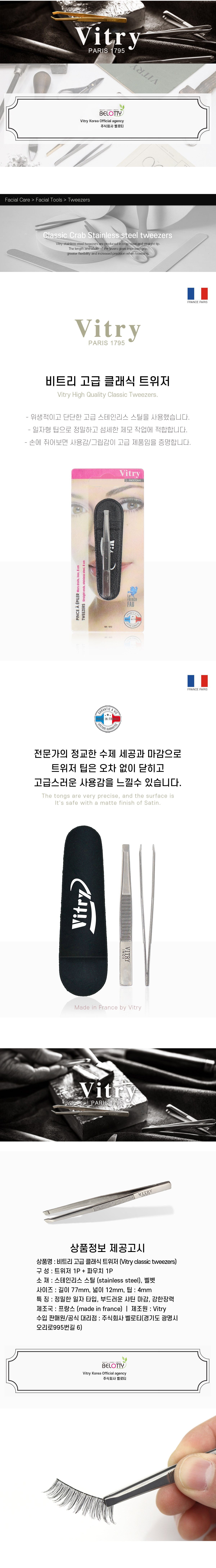 Vitry 豪華經典鑷子套裝包含三支高品質鑷子,採用法國製造的不鏽鋼材質,堅固耐用且衛生。直頭設計能精準夾取細小毛髮,輕鬆打造完美眉型與眼妝。符合人體工學的設計提供舒適握感,讓您輕鬆上手。套裝包含精美收納袋,方便攜帶與保存。Vitry 鑷子是您打造精緻妝容不可或缺的工具。
