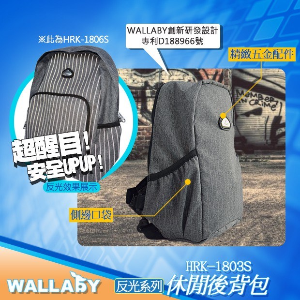 WALLABY 反光背包 HRK-1803DL 是一款時尚與安全兼具的理想選擇。這款背包採用反光材質,在低光源環境下能有效提高可見度,確保您的安全。其簡約的條紋設計,無論是學生還是上班族,都能輕鬆搭配各種休閒造型。背包空間充足,可容納日常所需物品,讓您輕鬆應對各種場合。WALLABY品牌以其高品質和耐用性而聞名,這款背包也不例外,是您值得信賴的選擇。此外,我們提供快速配送和便捷的退貨服務,讓您購物無憂。