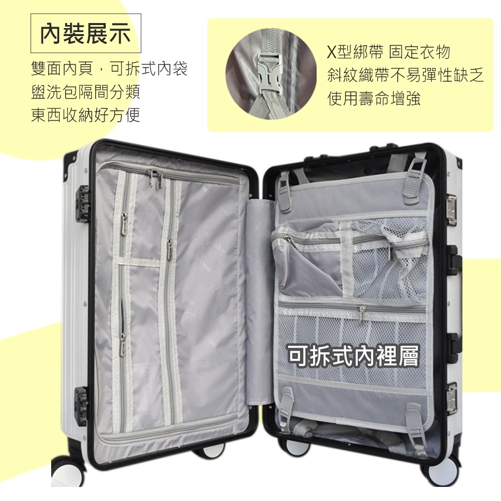 這款復古款黑色28吋行李箱,是您旅行的最佳夥伴。採用PC+ABS材質,堅固耐用,讓您的行李箱始終保持最佳狀態。內部空間設計貼心,配有可拆式內襯和X型綁帶,方便您整理和固定衣物,讓您的旅途更加輕鬆愉快。此外,這款行李箱還配有TSA海關鎖,讓您的行李在國際旅行中更加安全可靠。無論是商務出差還是休閒度假,這款復古行李箱都能滿足您的需求,讓您在旅途中展現獨特品味。
