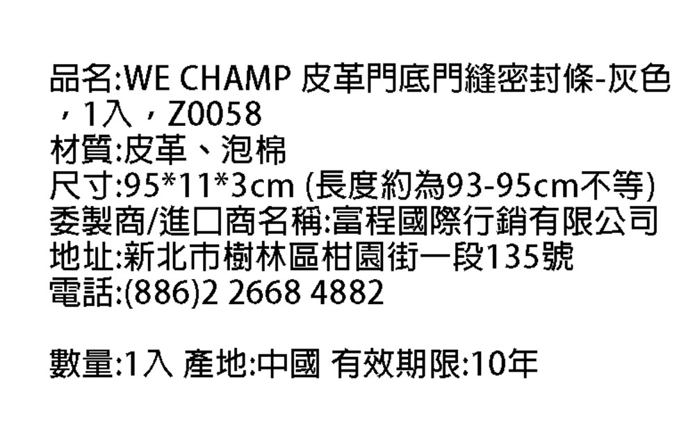 - 灰色皮革門底密封條,有效阻隔蚊蟲、蟑螂進入室內,保持居家環境衛生。