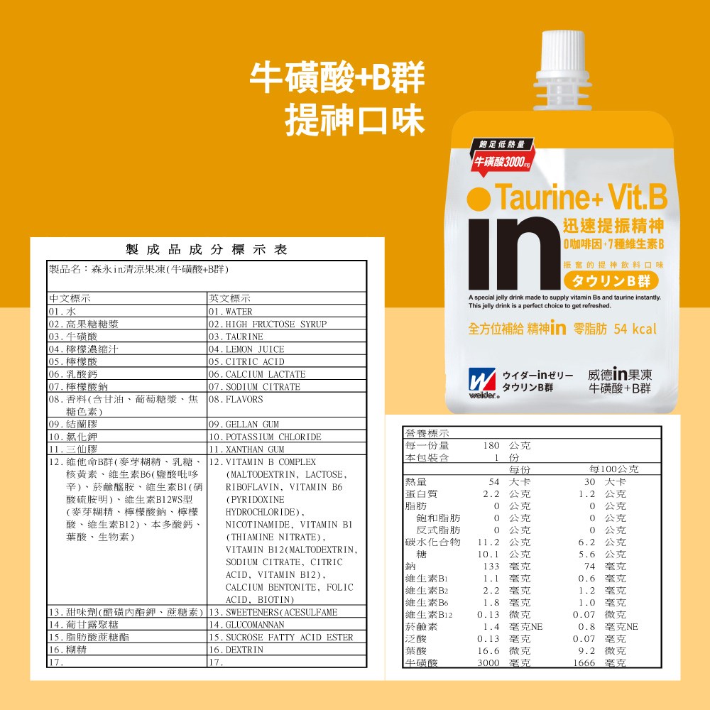 威德清涼果凍提神B群,是您隨時補充能量的最佳選擇。它富含維生素B群和牛磺酸,能迅速提神,讓您思緒清晰,反應敏捷。不含咖啡因,讓您安心享受,不必擔心影響睡眠。低熱量、零脂肪,健康無負擔,讓您享受美味的同時。口感清爽,方便攜帶,是您工作、學習、運動的最佳夥伴。