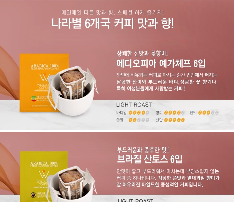 - 享受來自六個國家的咖啡風味,每天品嚐不同產地的獨特香氣與口感。