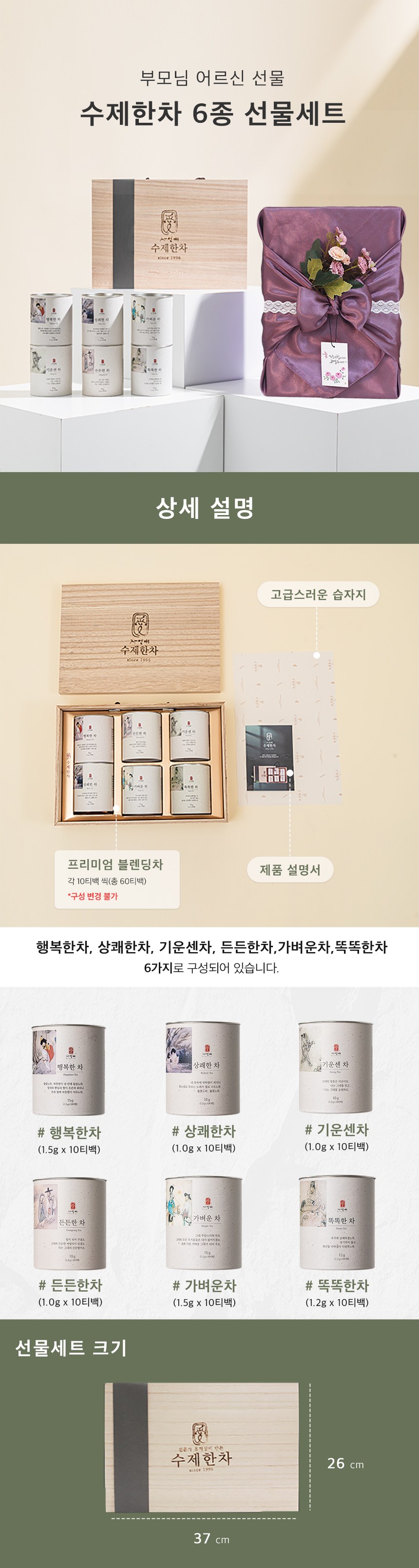 WELLNESS TEA手工茶禮盒,嚴選多種草本原料,由專家手工製作,提供六種獨特風味的茶品。每款茶皆以獨立茶包包裝,方便您隨時沖泡,享受一杯暖心好茶。禮盒包含精美包袱巾與購物袋,無論是自用或送禮,都能展現您的品味與心意。品嚐這份來自韓國的傳統手工茶,感受自然健康的幸福滋味。讓WELLNESS TEA為您的生活增添一份溫暖與寧靜。