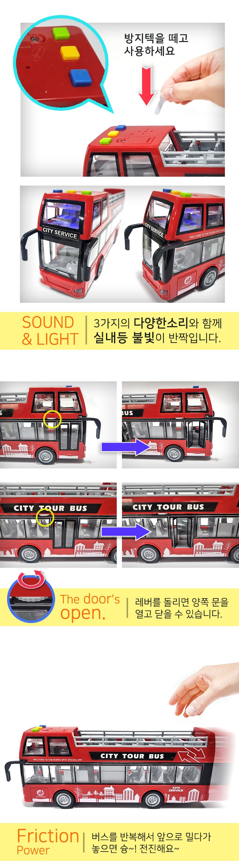 - 這款紅色雙層觀光巴士,配備逼真燈光與音效,讓孩子彷彿身歷其境,體驗城市觀光樂趣。