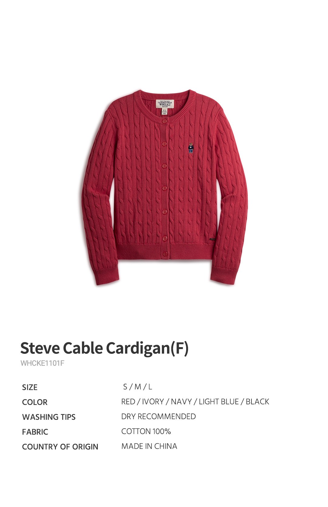 WHO.A.U 女款 Steve Cable 開襟衫,採用柔軟舒適的棉質布料製成,提供絕佳的穿著體驗。淺藍色的清新色調,輕鬆搭配各式服裝,展現您的個人風格。獨特的Steve Cable設計,為整體造型增添時尚感。這款開襟衫適合春季和秋季穿著,是您衣櫥裡的必備單品。無論是休閒外出或日常穿搭,都能讓您散發自信魅力。精選材質與細膩工藝,確保產品的耐穿性與舒適度。
