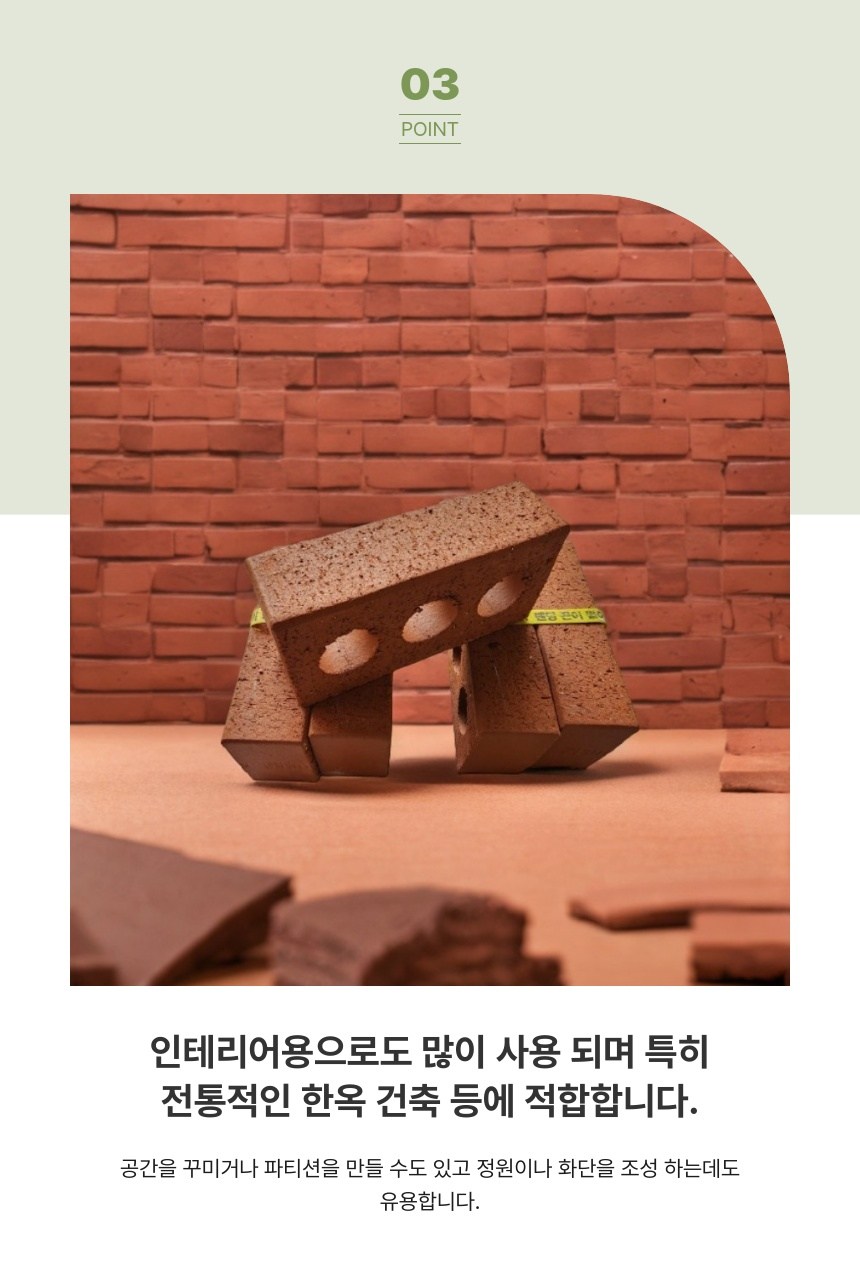 WITH磚塊黃土磚塊採用紅壤土製成,尺寸為190*90*57mm,為您的空間增添自然感性。此磚塊不僅具有高耐用性,還能抵抗潮濕,不易產生裂縫或變形,確保建築結構的穩固與安全。無論是室內設計、隔間製作,還是庭園花壇的打造,黃土磚都能輕鬆勝任。其自然的色感與質感,能為空間帶來獨特的風格,讓您的生活空間更具品味。非常適合用於傳統韓屋建築,或用於DIY室內裝潢,打造獨具個性的空間。