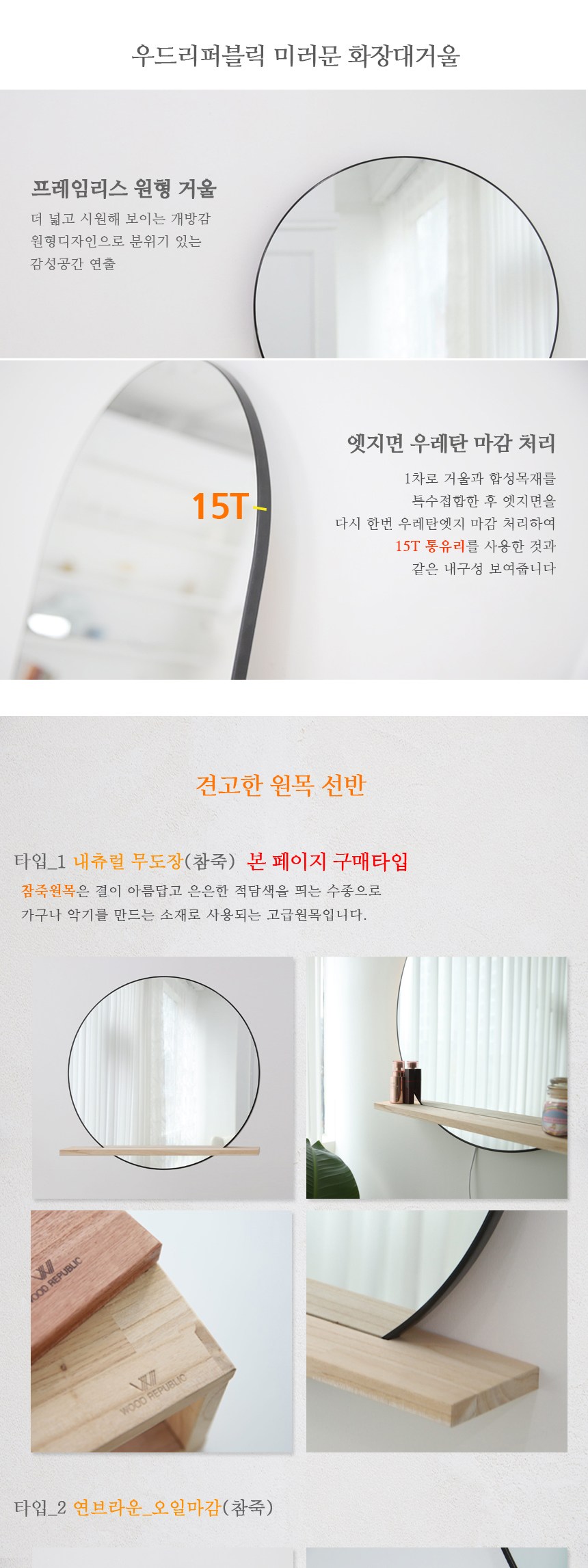 - 圓形鏡面設計,搭配自然色木框,簡約時尚,輕鬆融入各種居家風格。