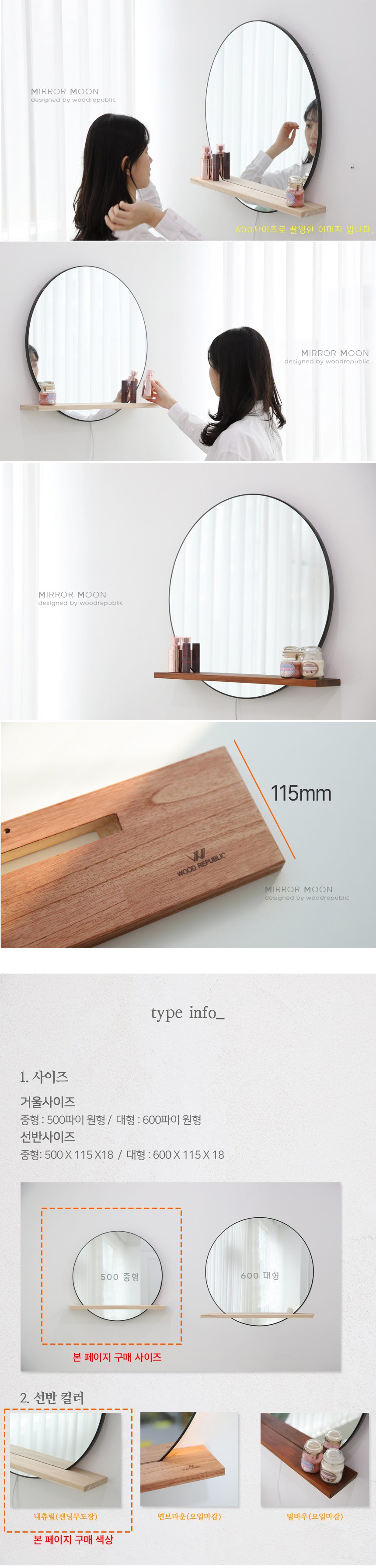 WOOD REPUBLIC Mirror Moon 圓形層架壁鏡 香椿木 層架型 500mm, 01 自然色