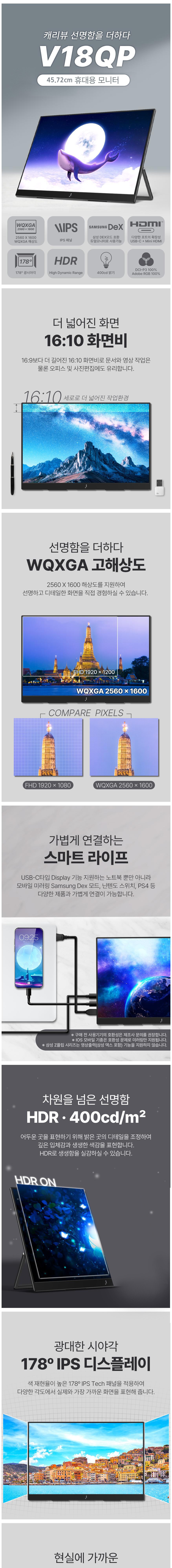 這款45.72公分WQXGA便攜式顯示器提供令人驚豔的視覺體驗。16:10的螢幕比例,讓您在處理文件和編輯照片時擁有更寬廣的視野。WQXGA高解析度呈現清晰細膩的畫面,色彩鮮豔生動。它還支援多種連接方式,包括USB-C和Mini HDMI,方便您連接各種設備。內建喇叭讓您無需額外設備即可享受音訊,而VESA孔則提供靈活的安裝選項,打造舒適的工作環境。