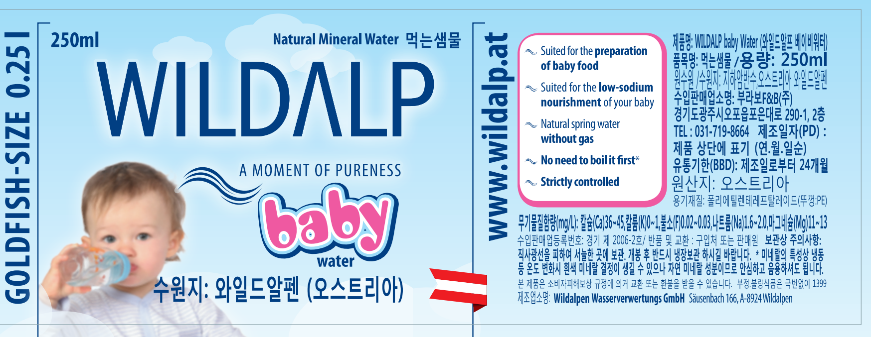 Wilde 礦泉水,源自奧地利阿爾卑斯山脈,未經任何特殊處理,保留大自然原有的純淨與甘甜。富含多種對人體有益的礦物質,口感清爽,適合各年齡層飲用。小瓶裝設計,方便隨身攜帶,隨時補充水分,維持身體機能。無論是日常飲用、沖泡奶粉或嬰兒食品,都是安心健康的選擇。讓您隨時享受來自阿爾卑斯山的純淨滋潤。