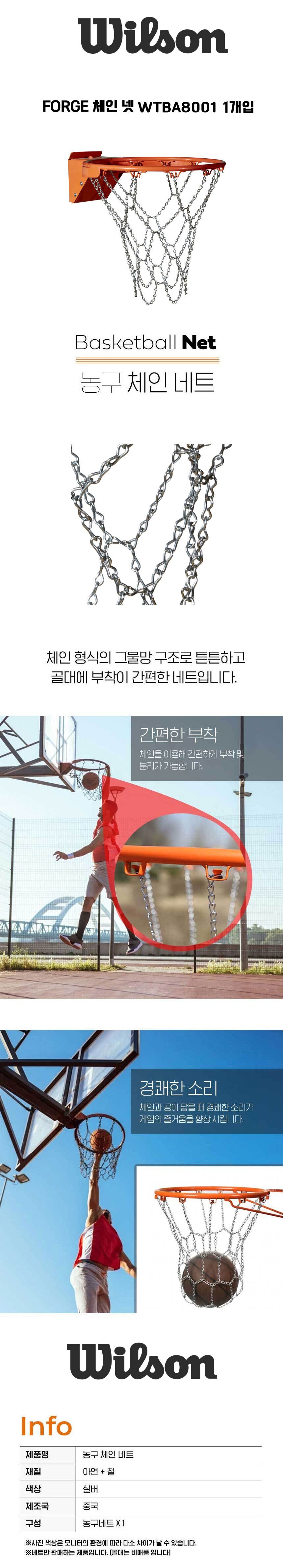 Wilson鐵製籃網採用堅固耐用的鏈式網狀結構設計,不易損壞,適合各種籃球場地使用。安裝過程簡單方便,使用鏈條即可輕鬆固定於籃框上,拆卸也十分容易。當籃球與鏈條接觸時,會發出清脆的聲響,增添比賽的樂趣與真實感。銀色外觀簡約大方,適用於各種風格的籃球框。本產品僅販售籃球網,不包含籃框。