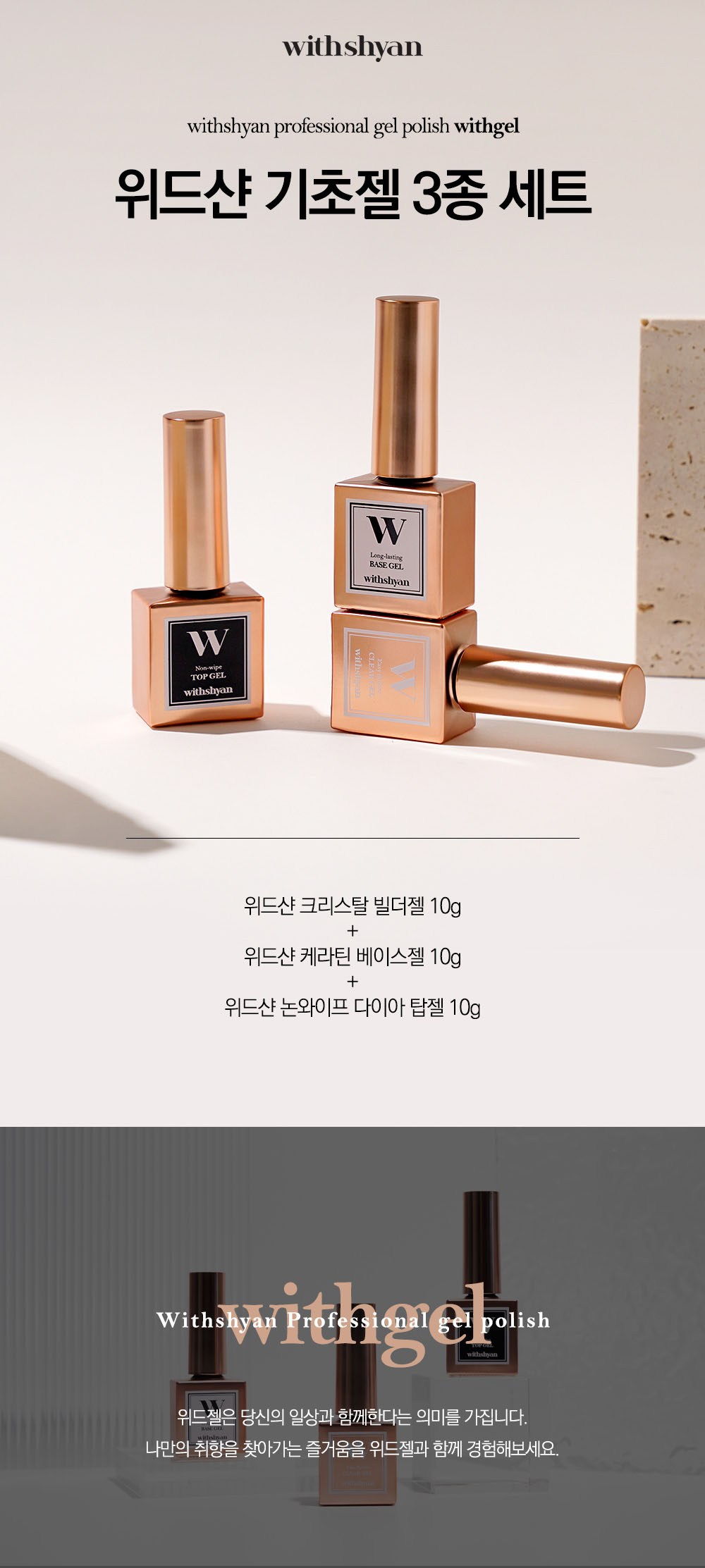 Withshan凝膠基礎凝膠套組包含角蛋白底膠、免擦拭鑽石頂部凝膠和水晶建構凝膠,為您提供完整的凝膠美甲體驗。角蛋白底膠溫和呵護指甲,減少損傷,讓凝膠更持久。免擦拭鑽石頂部凝膠帶來驚人光澤,無需擦拭,節省時間。水晶建構凝膠可用於覆蓋指甲凹凸、延長指甲、修補斷裂指甲和固定飾品,功能多樣。有了這套凝膠,您在家也能輕鬆打造專業級美甲。