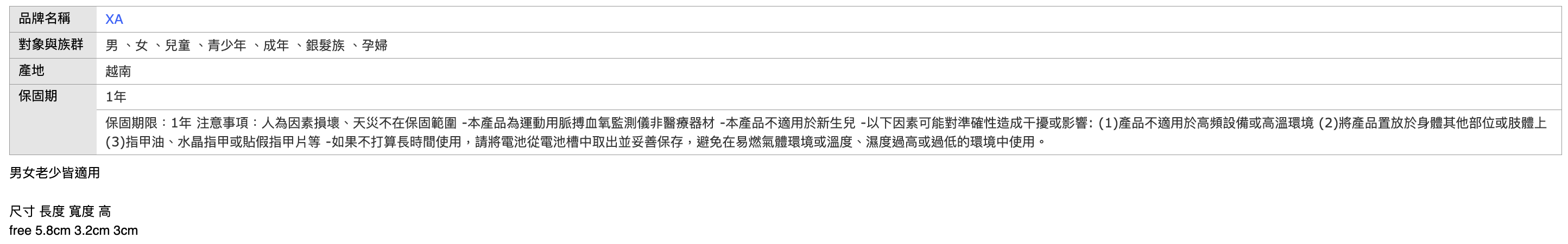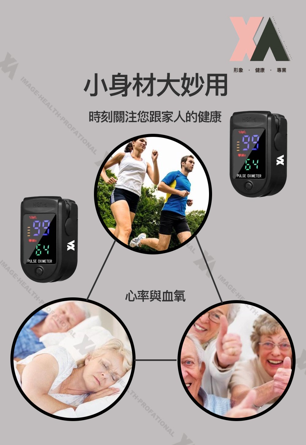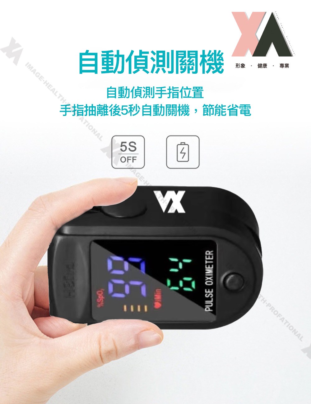 XA 運動脈搏血氧監測儀,小巧輕便,隨時掌握您的健康狀況。這款監測儀採用先進的光電傳感技術,快速準確地測量血氧飽和度和心率。其大字體四色TFT螢幕,即使在光線不足的環境下也能清晰讀取數據。產品通過台灣SGS精準度檢驗,並獲得衛福部食藥署許可,品質值得信賴。適合各年齡層人士使用,特別是運動愛好者、長者、孕婦及有呼吸道問題的人士。