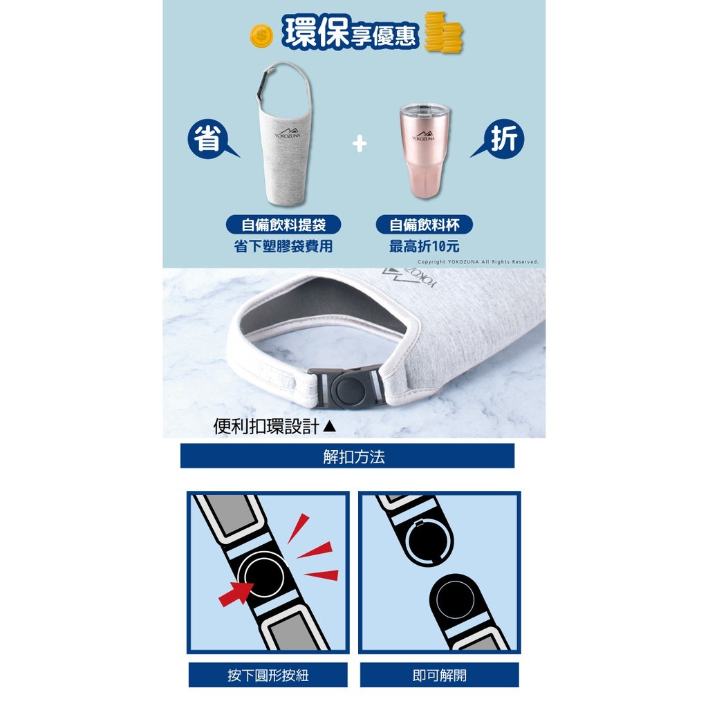 YOKOZUNA 橫鋼 便利扣環手提杯袋3件組, 1組
