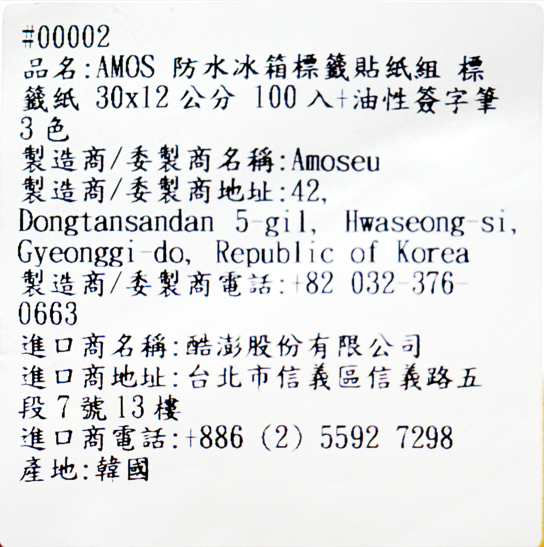 這款Yeonduaengdu防水標籤貼紙+簽字筆組,是您整理收納的好幫手。防水材質讓您使用於冰箱等潮濕環境,不易脫落。搭配油性簽字筆,書寫清晰持久,不易褪色。無論是標記冷藏食品,還是整理生活小物,都能一目瞭然。輕鬆管理您的物品,讓生活更加井井有條。