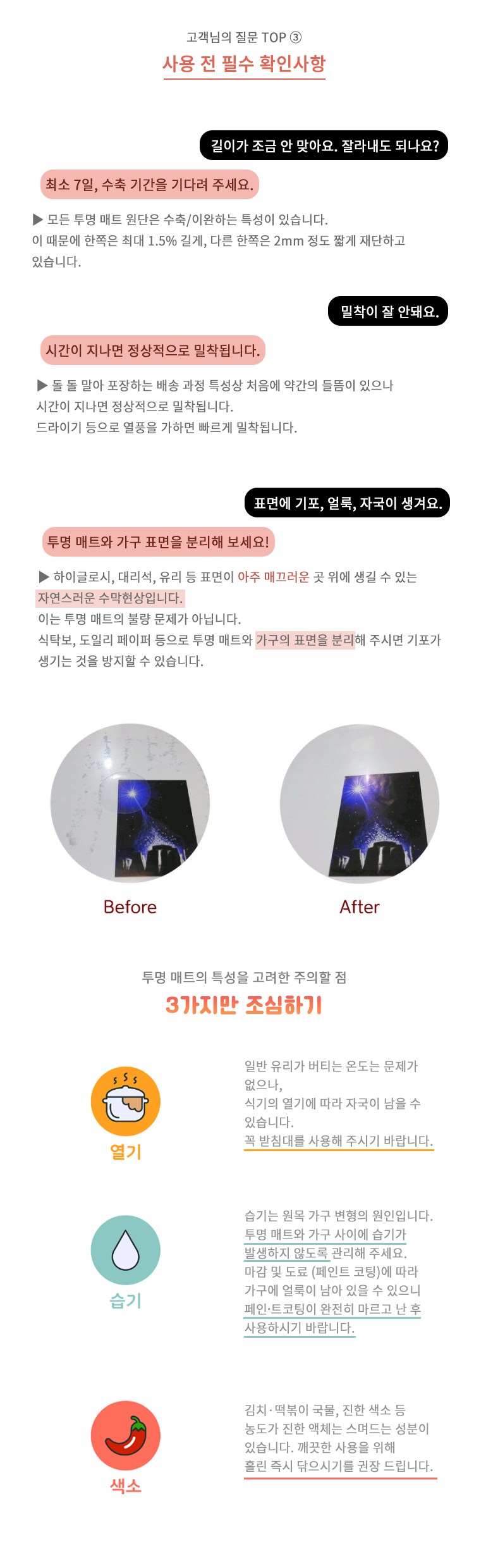 我們堅持採用優質 PVC 材質,厚度均勻,柔軟度佳,可根據您的需求選擇 1mm、2mm、3mm 等不同厚度。產品邊緣經過細緻的圓角處理,避免刮傷,使用更安全放心。無論是餐桌、書桌、茶几,還是地板,Yepia 透明桌墊都能為您的家具提供周全的保護,讓您的居家環境煥然一新。