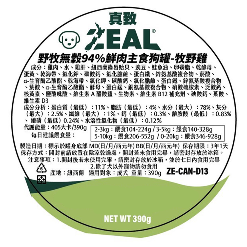 ZEAL真致野牧無穀94%鮮肉主食狗罐,選用高品質牧野雞肉,提供狗狗所需的豐富蛋白質與營養。無穀配方,呵護愛犬腸胃,減少過敏原。特別添加綠唇貽貝,有助於維護關節健康,讓狗狗活力充沛。肉汁塊狀質地,美味可口,適合各年齡階段的狗狗食用。這款主食罐不僅美味,更能提供均衡營養,讓您的愛犬健康成長,毛髮亮麗。