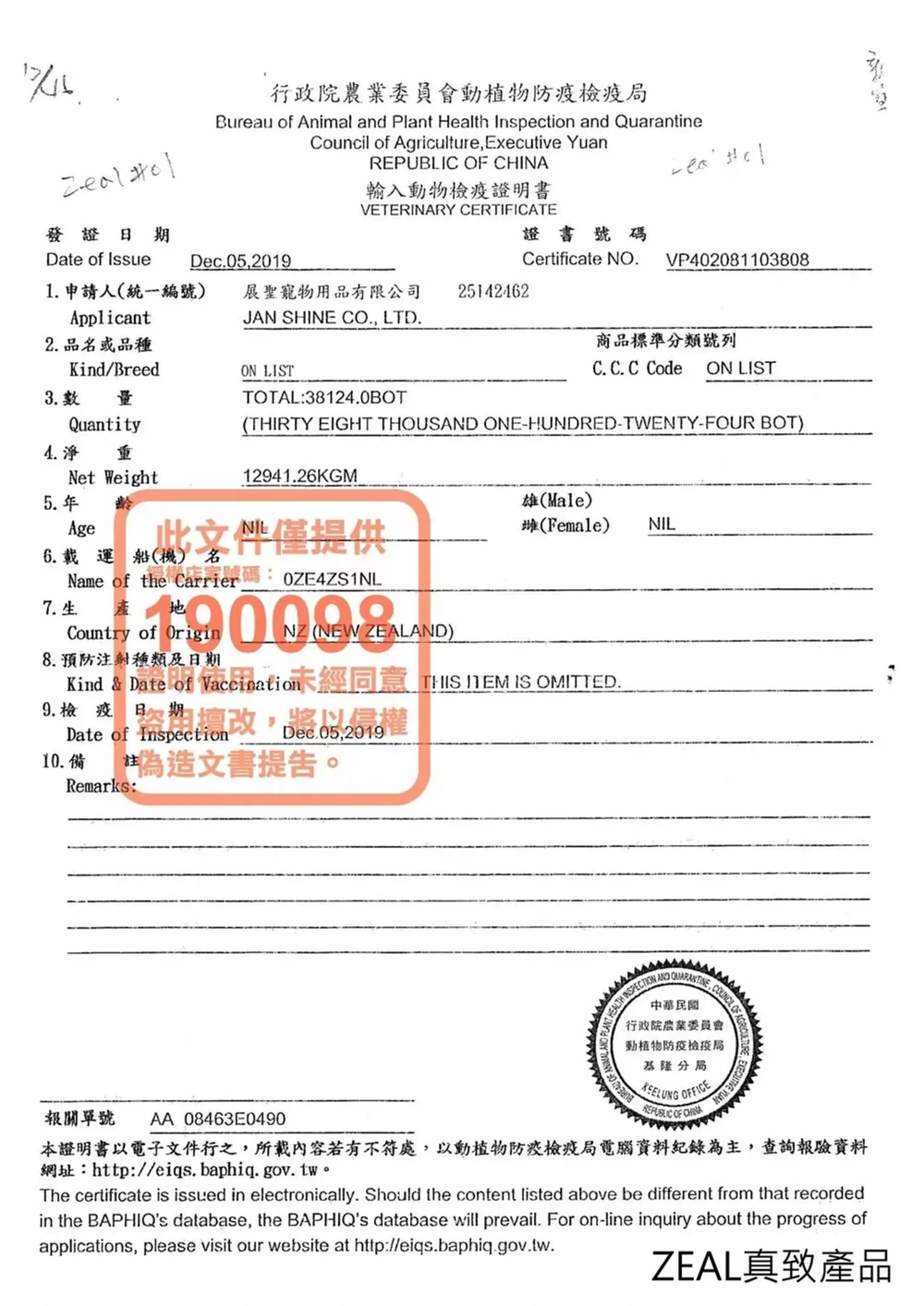 2. 生產過程由NZFSA(紐西蘭食品安全局)控管,並取得FDA(美國食品藥物管理局)註冊及歐盟認證。