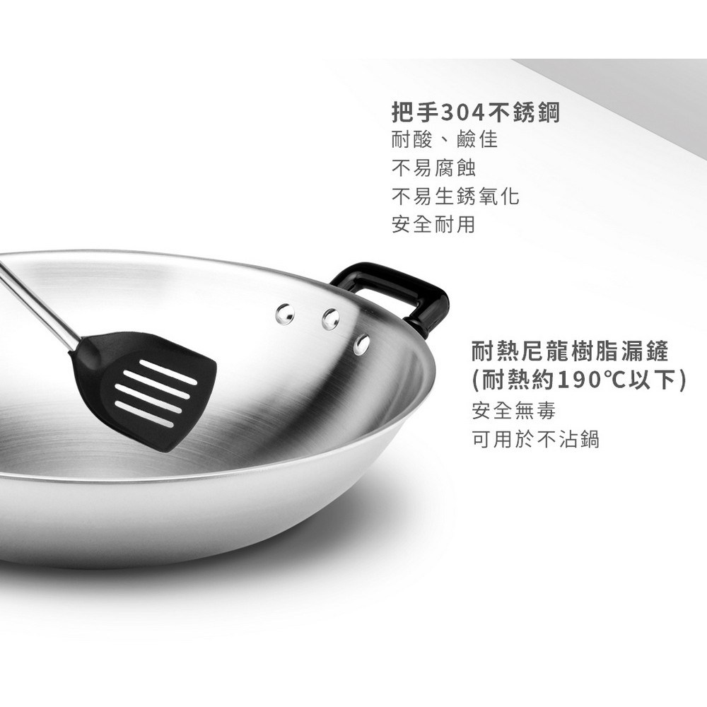 - 獨特漏鏟設計,快速瀝除多餘油脂,保持食材清爽,減少油膩負擔。