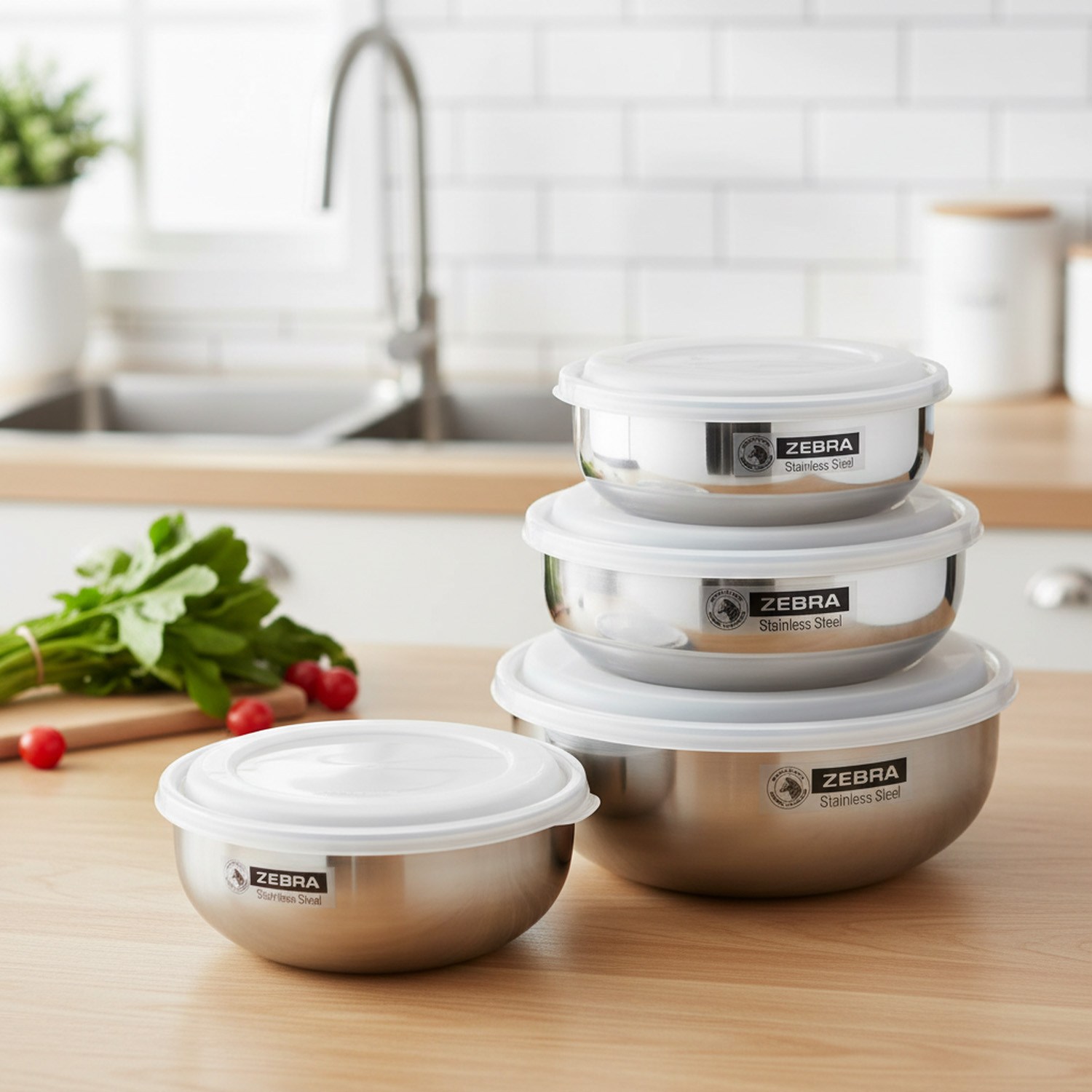 ZEBRA THAILAND 斑馬牌 調理碗組-Smart是您廚房的得力助手。採用304不銹鋼材質,安全衛生,耐用不易生鏽。一套包含12cm、14cm、16cm、18cm四種尺寸,滿足您不同的烹飪和儲存需求。附帶保鮮碗蓋,有效延長食物的新鮮度。可用於攪拌食材、準備料理、儲存食物等多種用途。簡約時尚的設計,美觀大方,為您的廚房增添一份質感。