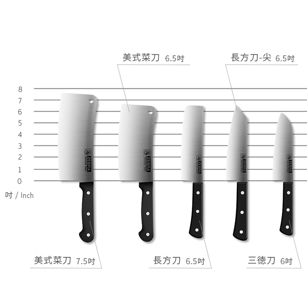 - 斑馬牌牛刀採用420不鏽鋼刀刃,切割食材更加輕鬆省力,讓您享受烹飪的樂趣。