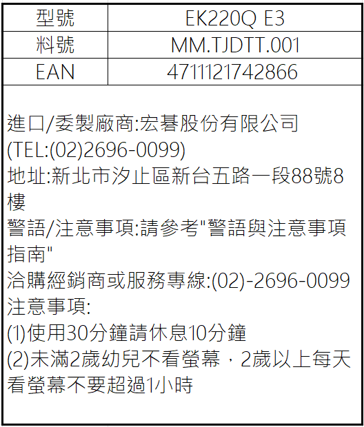 acer 宏碁 E3 系列 22 吋護眼螢幕,採用 FHD 高解析度 IPS 面板,提供清晰細膩的視覺效果和廣闊的可視角度。具備 HDMI 和 VGA 連接埠,方便連接多種設備。護眼技術有效減少藍光和螢幕閃爍,降低長時間使用造成的眼睛疲勞,保護您的視力健康。100Hz 螢幕更新率提供流暢的視覺體驗,減少畫面撕裂和模糊,讓您在工作、娛樂或遊戲中都能享受舒適的視覺體驗。EK220Q 型號設計簡約時尚,是您提升工作效率和享受娛樂生活的理想選擇。