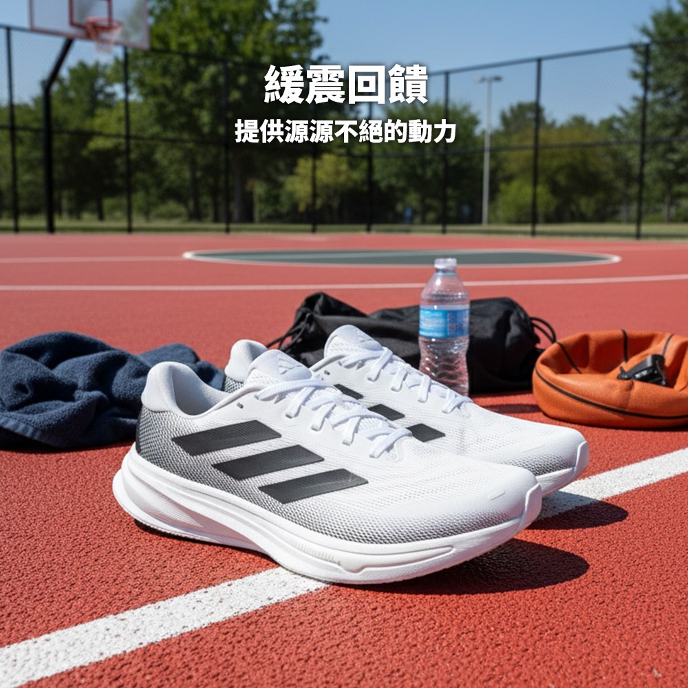 - 愛迪達慢跑鞋採用透氣材質,確保運動時雙腳保持乾爽舒適。