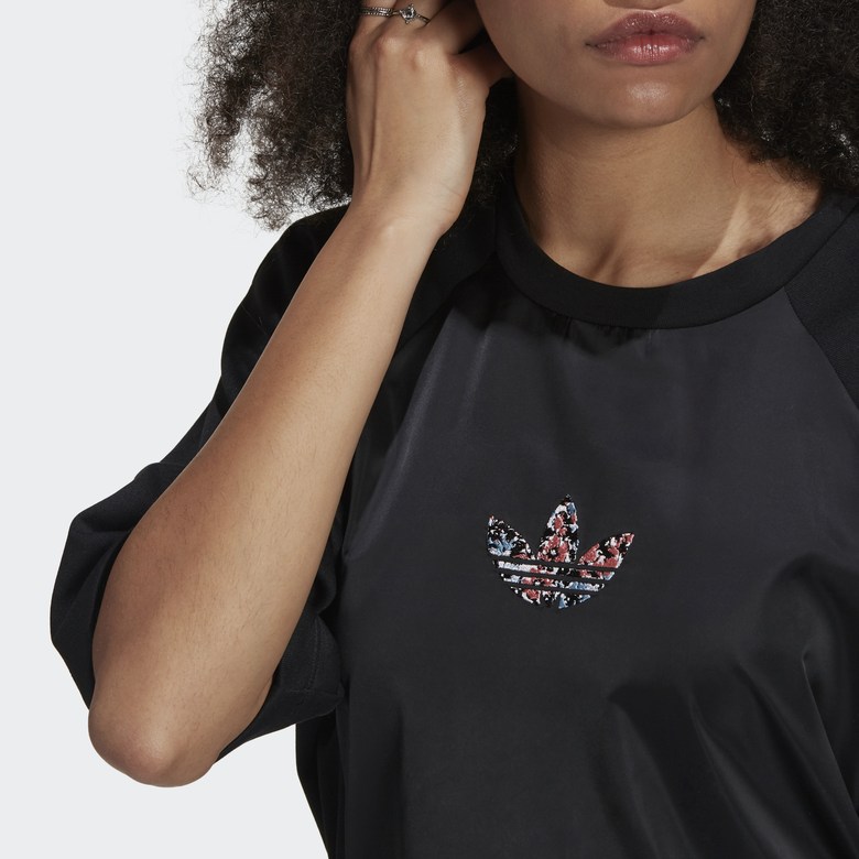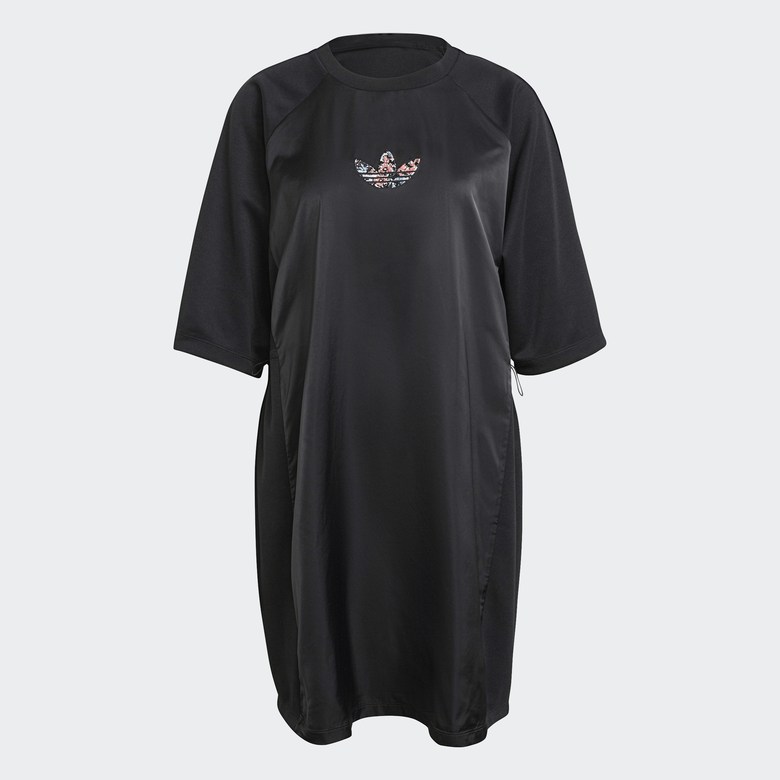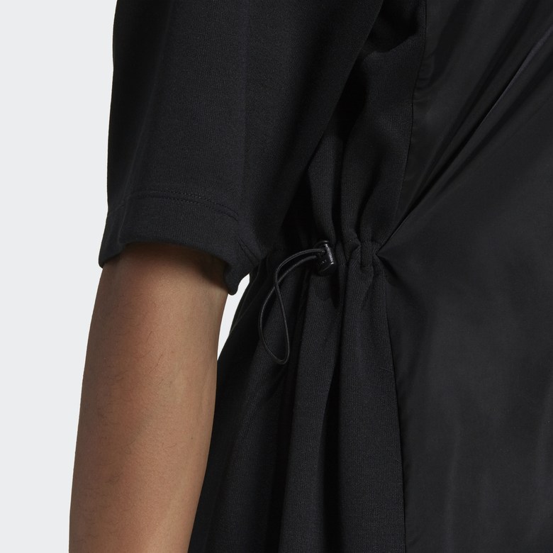 "하나의 아웃핏으로 간편하게 트렌디한 룩을 연출할 수 있는 티셔츠 드레스를 만나보세요. 허리 스트랩을 사용하여 원하는 대로 형태를 조절할 수 있습니다. 부드러운 새틴 소재가 은은한 광채를 더해줍니다. 가벼운 원 피스 디자인으로 스타일과 편안함의 조화를 선사합니다. 플라스틱 폐기물을 줄이는 재생 원단으로 제작된 제품입니다.