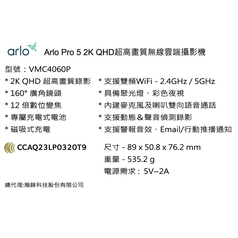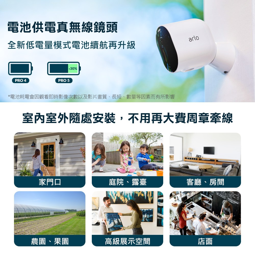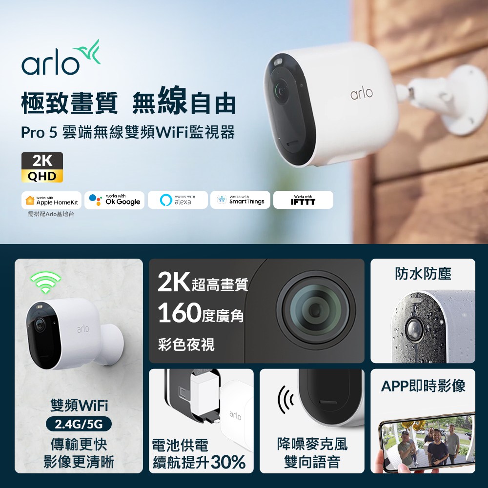Arlo Pro 5 2K雙頻無線網路攝影機,為您提供極致的家庭安全監控體驗。無線設計讓您可以輕鬆安裝在任何位置,擺脫電線的束縛。2K QHD超高畫質錄影,確保您能清晰地看到每一個細節,而雙頻WiFi則提供穩定快速的網路連接。此外,其戶外防水設計和彩色夜視功能,讓攝影機無論白天黑夜,晴天雨天,都能全天候守護您的家園。