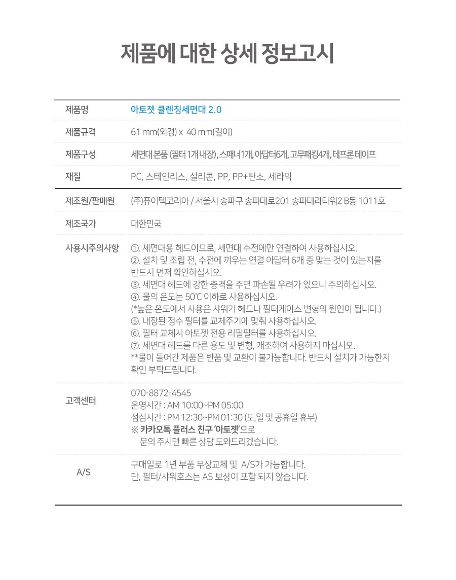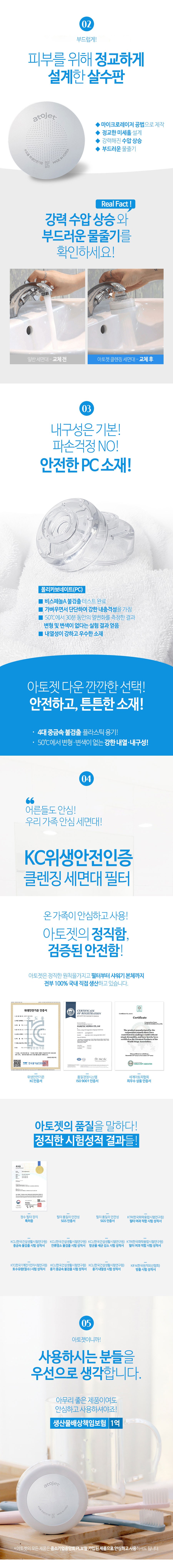 Atojet洗手台水龍頭過濾器2.0,為您提供更安心的用水體驗。採用ACF碳纖維濾芯,有效過濾鐵鏽、雜質及重金屬,讓您每天刷牙、洗臉都能使用乾淨的水。通過KC認證,品質有保障,且100%韓國製造,讓您用得更放心。簡易的安裝方式,搭配多種轉接頭,輕鬆適配家中洗手台。為家人健康把關,就從Atojet開始。