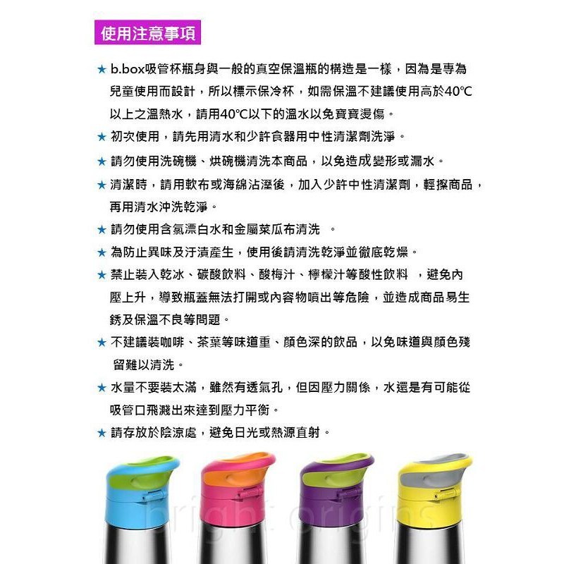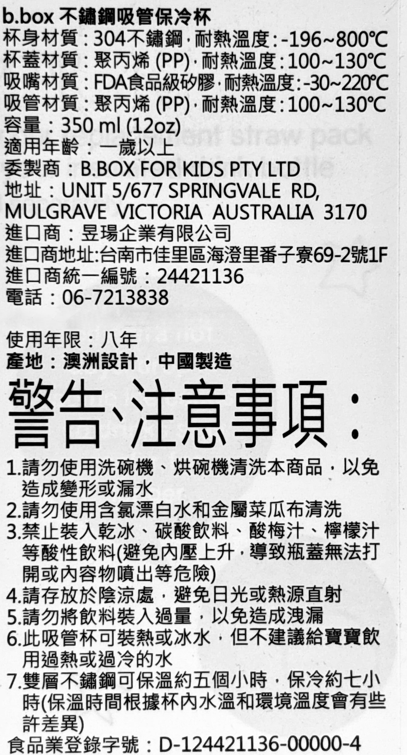 b.box 澳洲不鏽鋼吸管保冷杯,海洋藍色,350ml容量,是專為孩子設計的理想飲水夥伴。雙層不鏽鋼結構,保溫保冷效果長達數小時,讓孩子隨時都能享用適溫的飲品。柔軟的矽膠吸管搭配易於開啟的按鈕,方便孩子輕鬆飲用,同時保持衛生。防撞底座設計,增加耐用性,適合日常使用和戶外活動。這款保冷杯不含BPA、鄰苯二甲酸鹽和PVC,讓家長更安心。