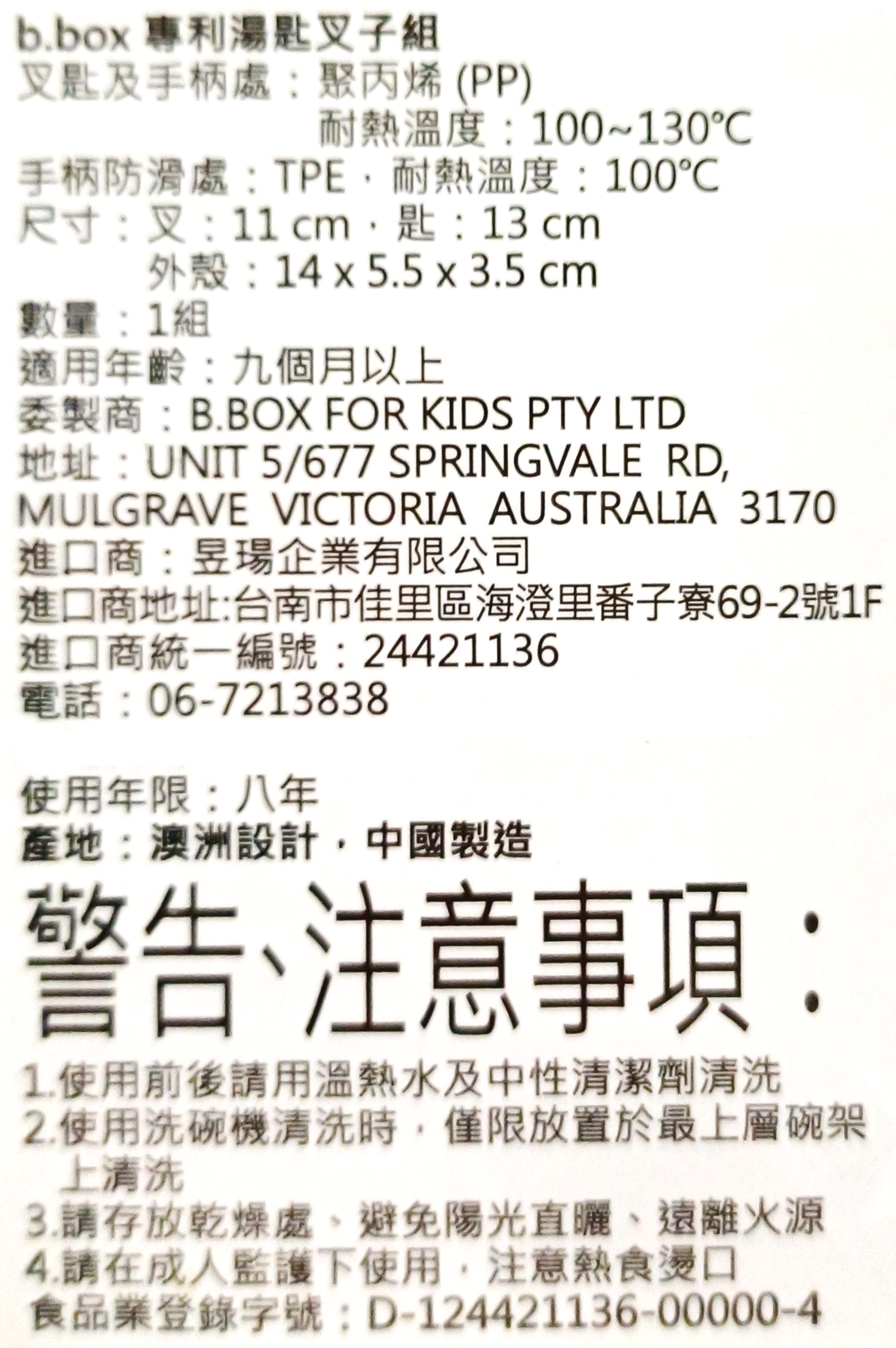 - 餐具材質: 叉匙及手柄處:聚丙烯(PP),耐熱溫度:100C〜130% 手柄防滑處:TPE,耐熱温度:100%
