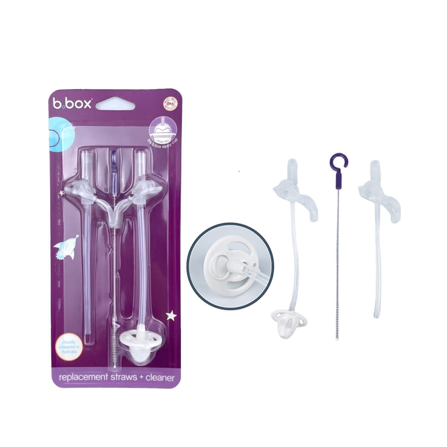 b.box 澳洲水杯替換吸管組,包含兩根吸管和一個清潔刷,讓您的寶寶隨時都能使用乾淨衛生的水杯。此吸管組適用於6個月以上的寶寶,採用不含BPA的安全矽膠材質,讓您安心使用。透明的設計方便您隨時檢查吸管的清潔狀況。定期更換吸管,確保寶寶的飲水衛生,讓寶寶健康成長。有了這組替換吸管,您再也不用擔心吸管損壞或髒污,隨時都能為寶寶提供乾淨的飲水。