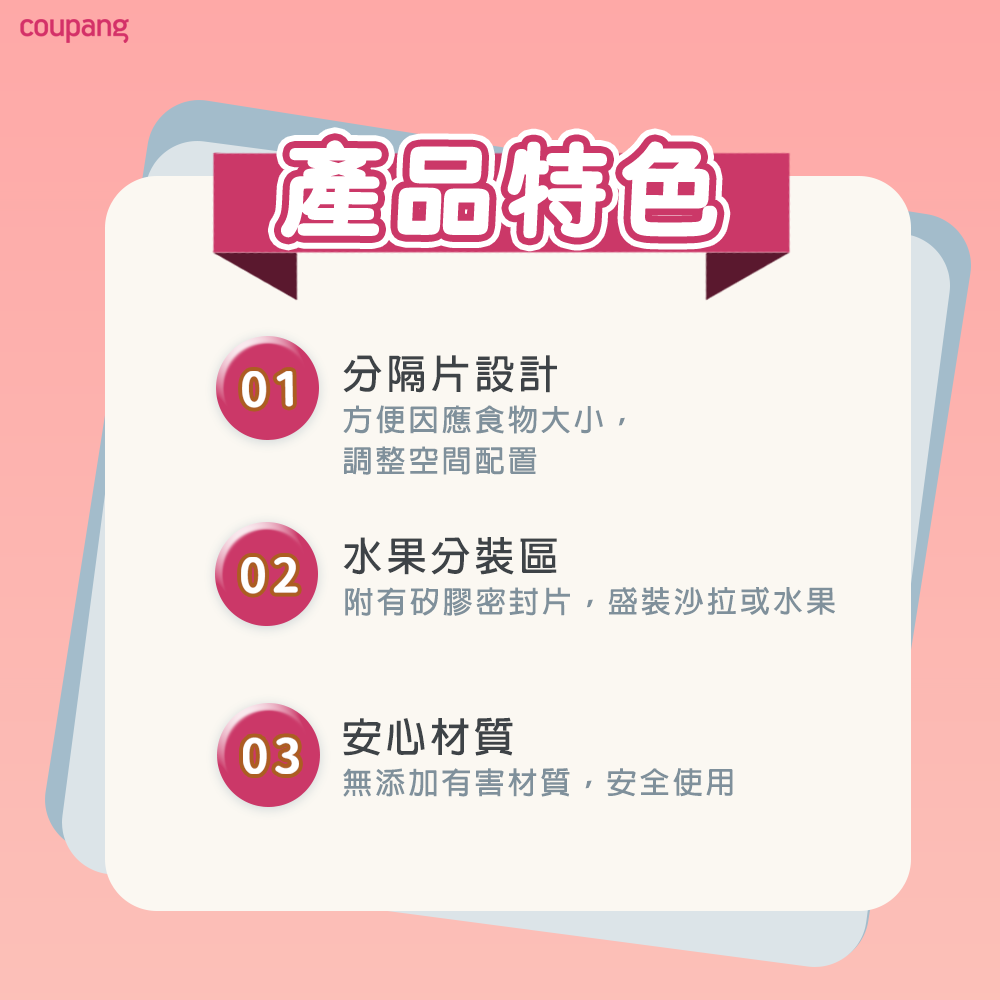 - 多格分層設計,可將不同食物分開存放,保持食物原味不混雜。
