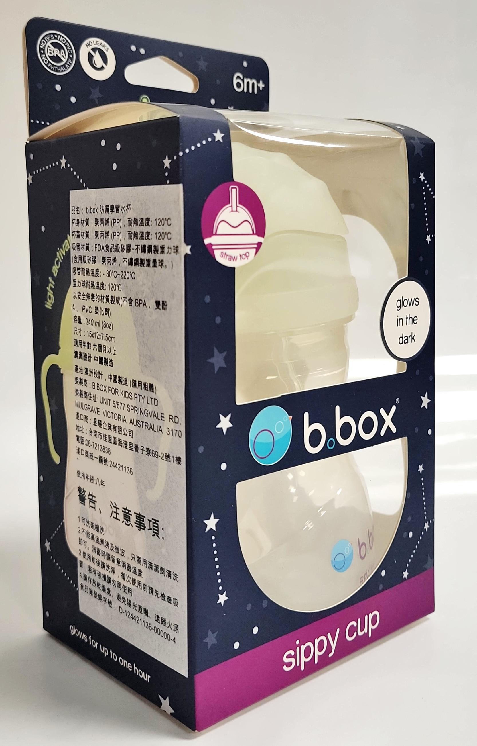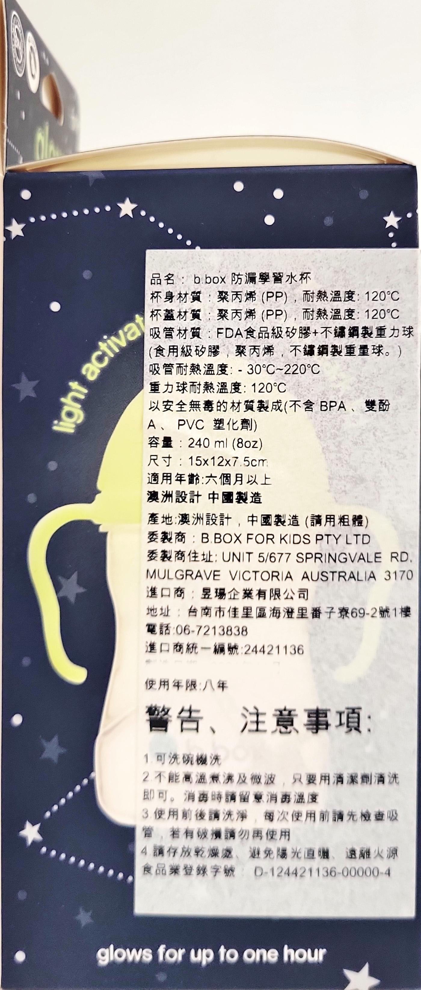 b.box 澳洲 重力球吸管杯,魔法夜光款,是專為6個月以上寶寶設計的理想飲水選擇,不含BPA,讓寶寶安心使用。獨特的重力球設計,無論寶寶以任何角度拿著杯子,都能輕鬆吸到水。魔法夜光功能讓寶寶在夜晚也能輕鬆找到水杯,增加飲水的樂趣和便利性。雙把手設計方便寶寶抓握,可拆卸清洗,並適用於洗碗機,讓媽媽清潔更省心。這款吸管杯不僅是寶寶從奶瓶到水杯的理想過渡,更是培養寶寶獨立飲水習慣的好幫手。