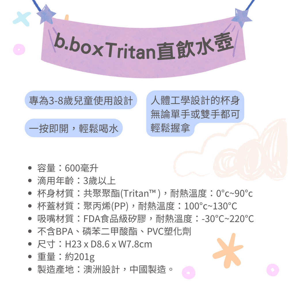 這款 b.box 澳洲直飲水壺,天空藍色,容量600ml,是專為孩子設計的理想水壺。採用Tritan材質,不含BPA,讓孩子安心飲用。水壺配有柔軟的矽膠吸嘴,方便孩子輕鬆飲用,同時具備防漏功能,避免灑漏。符合人體工學的瓶身設計,搭配可拆卸的防撞底座,耐用且方便孩子抓握。這款水壺適用於洗碗機清洗,讓清潔更輕鬆,是孩子們外出、上學或運動時的理想選擇。