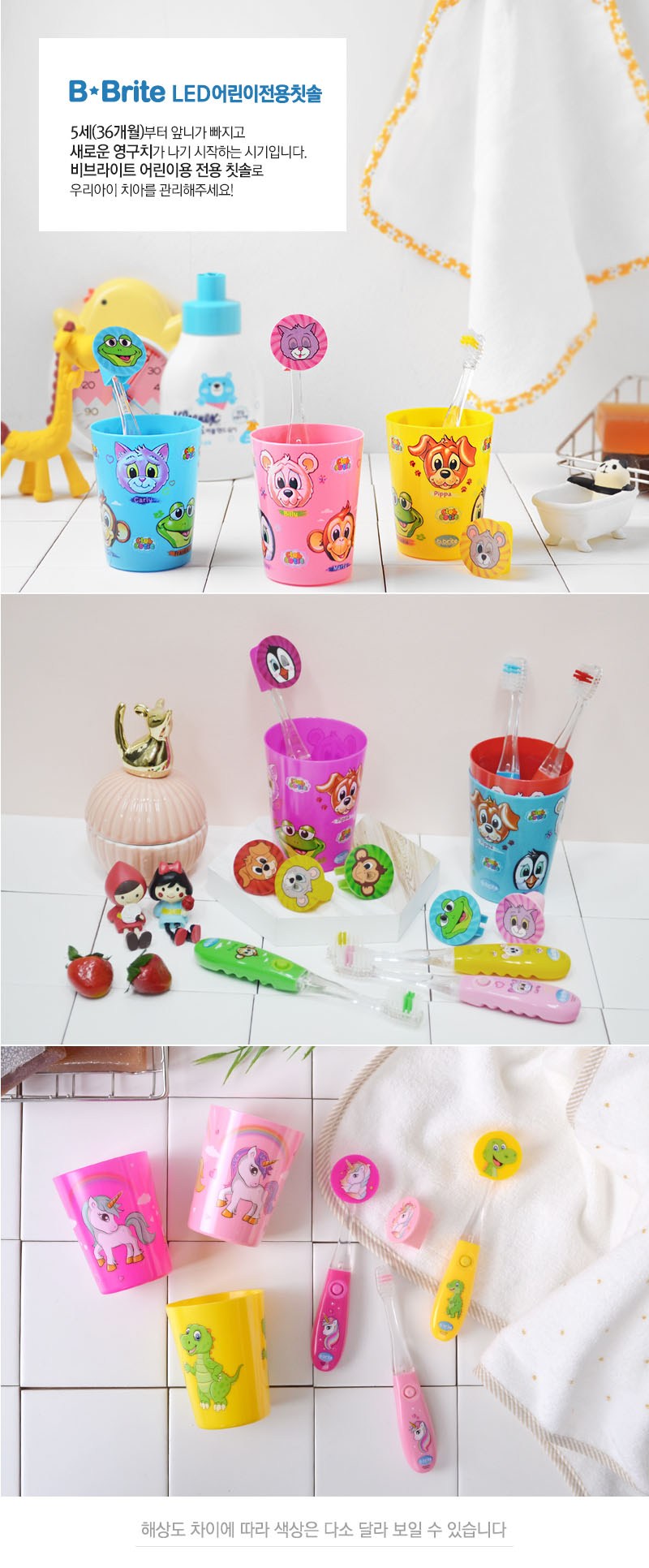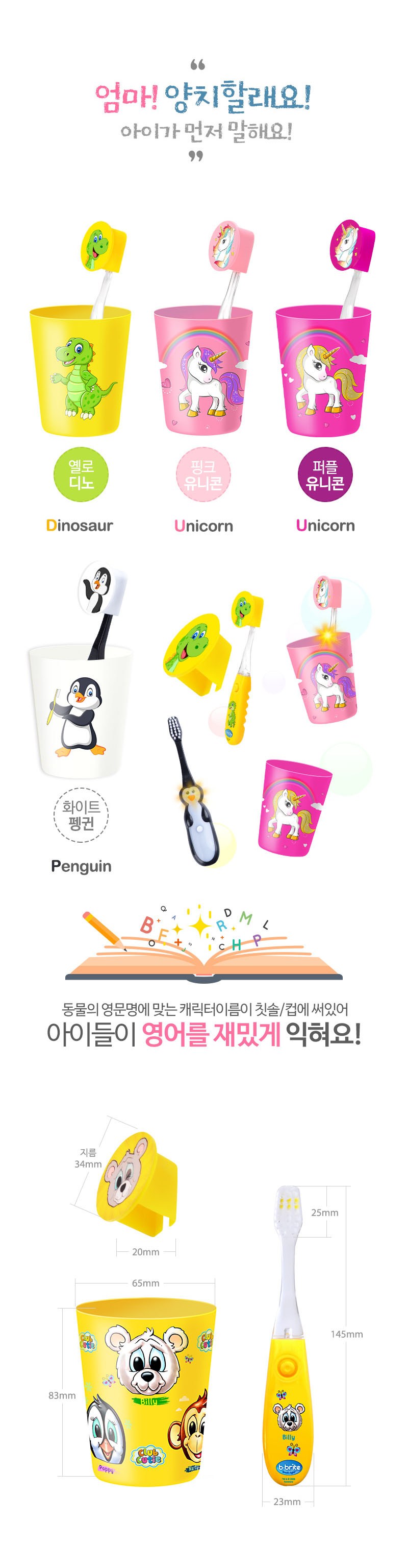 b.brite 孩童計時2分鐘LED燈牙刷+漱口杯+牙刷蓋組 黃色恐龍款+紫色獨角獸款, 2組