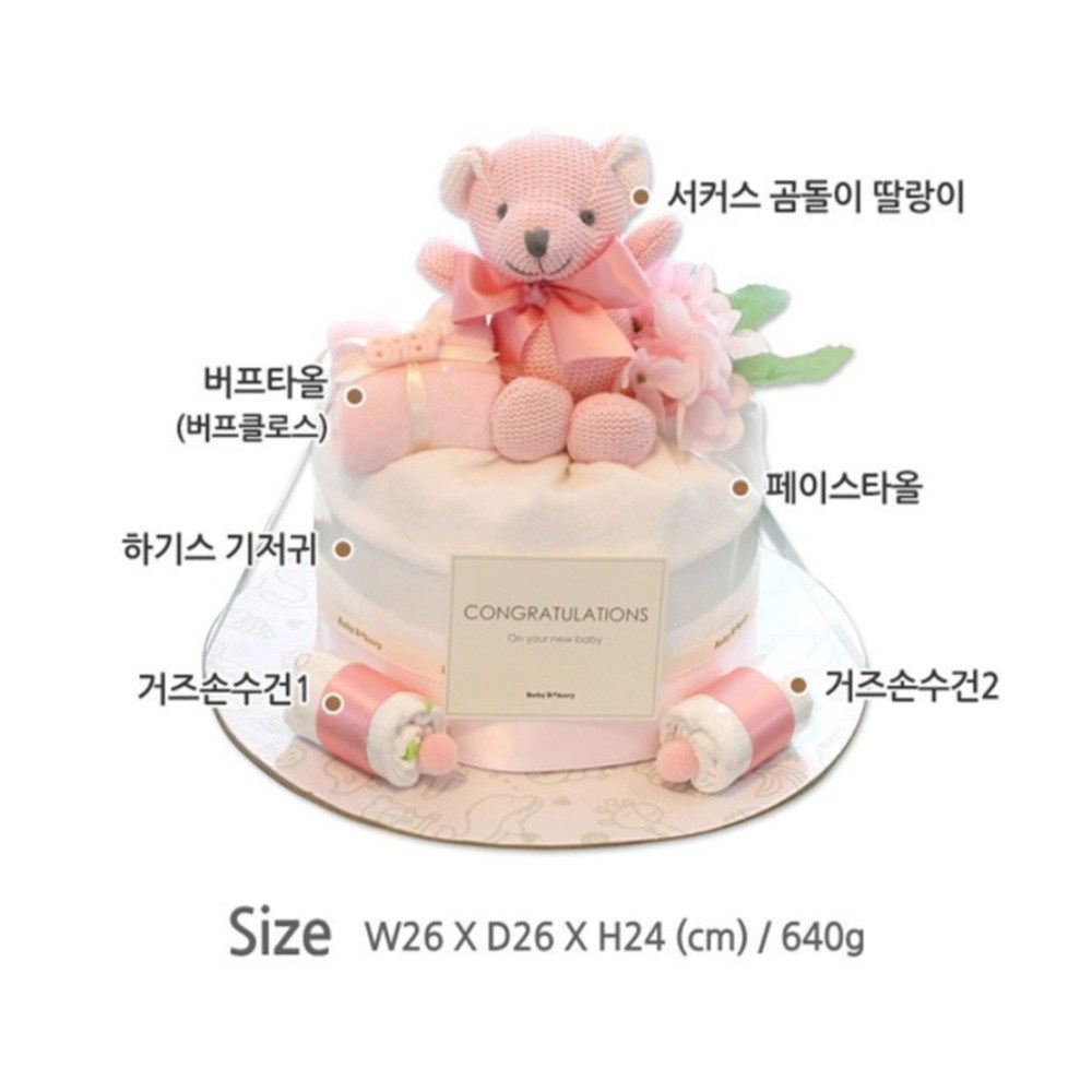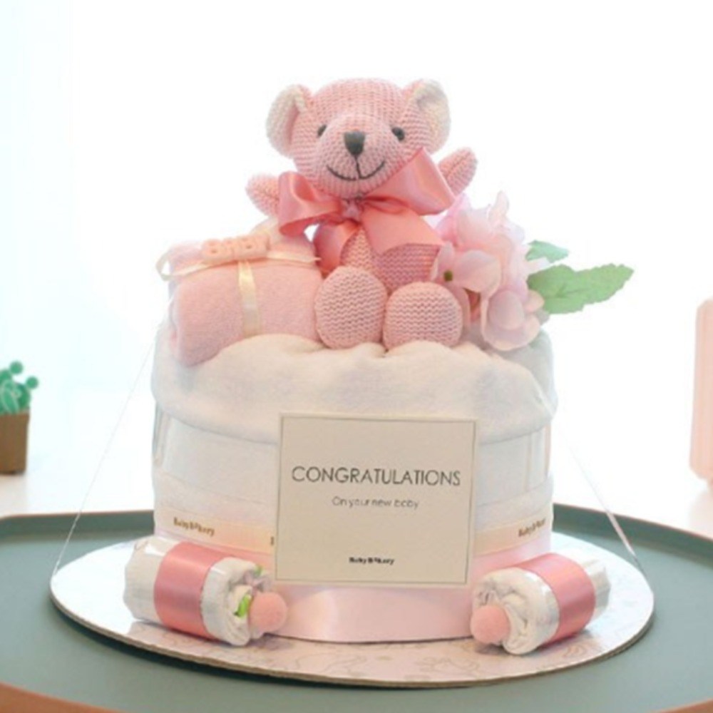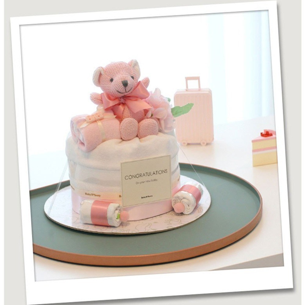 babybakery New 睡睡熊新生兒尿布蛋糕禮盒, 1套, 粉色