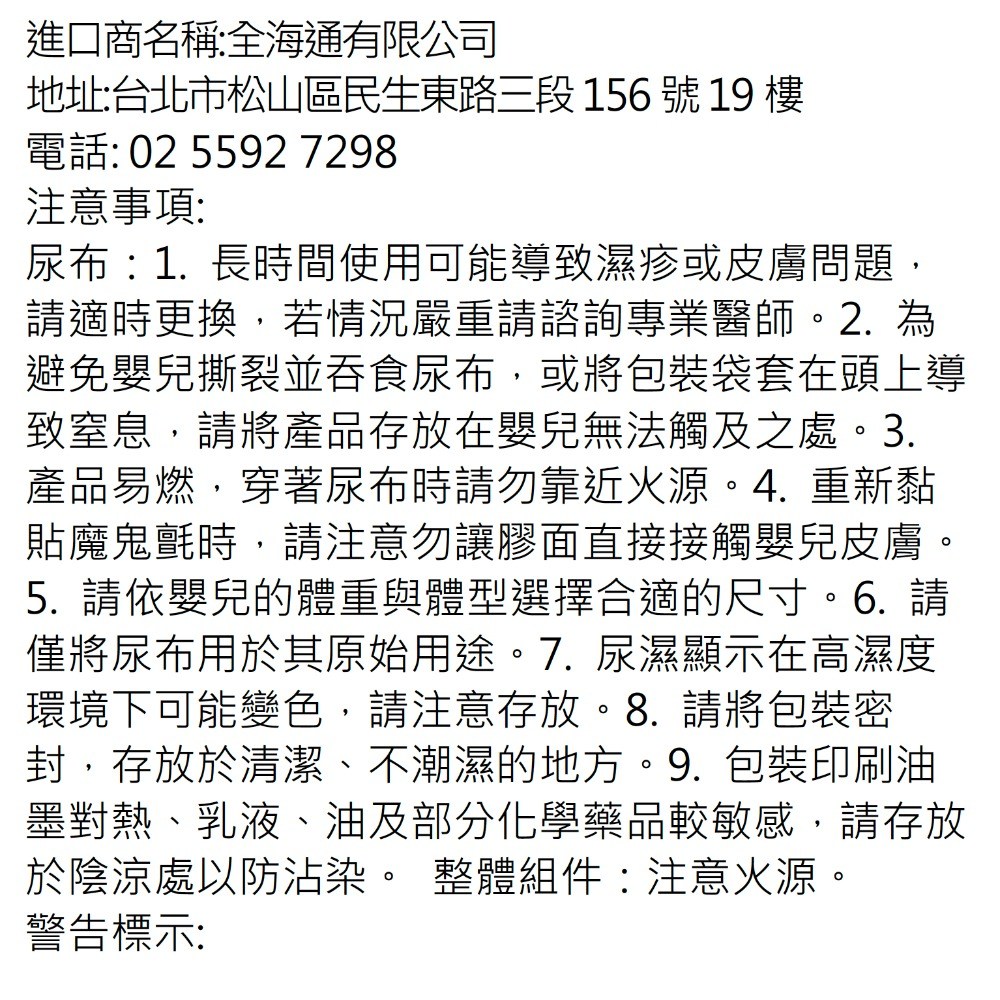 | 原產地/國 | 尿布:韓國,馬戲團熊搖鈴:中國,毛巾、圍兜、手帕:韓國 | 國內製造商或負責商名稱 | 全海通有限公司 |