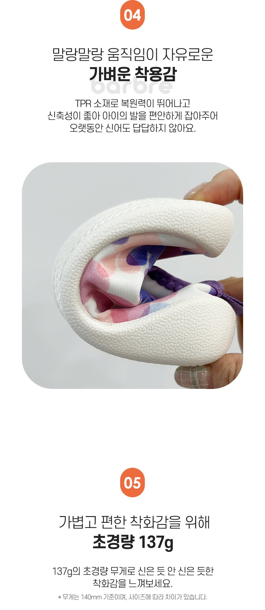 - 防滑鞋底設計,增加抓地力,確保孩子在濕滑環境中的安全。