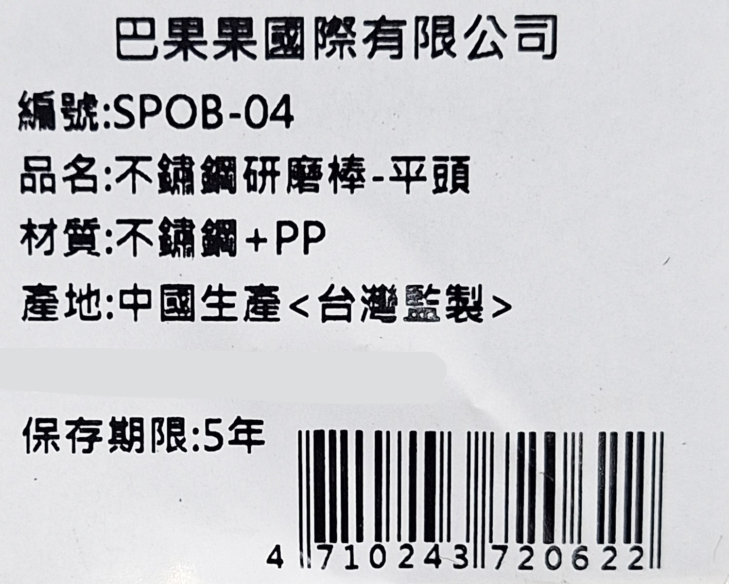 bargogo 巴果果 不鏽鋼研磨棒 平頭, 台灣監製, 22 x 2.5cm, 1支