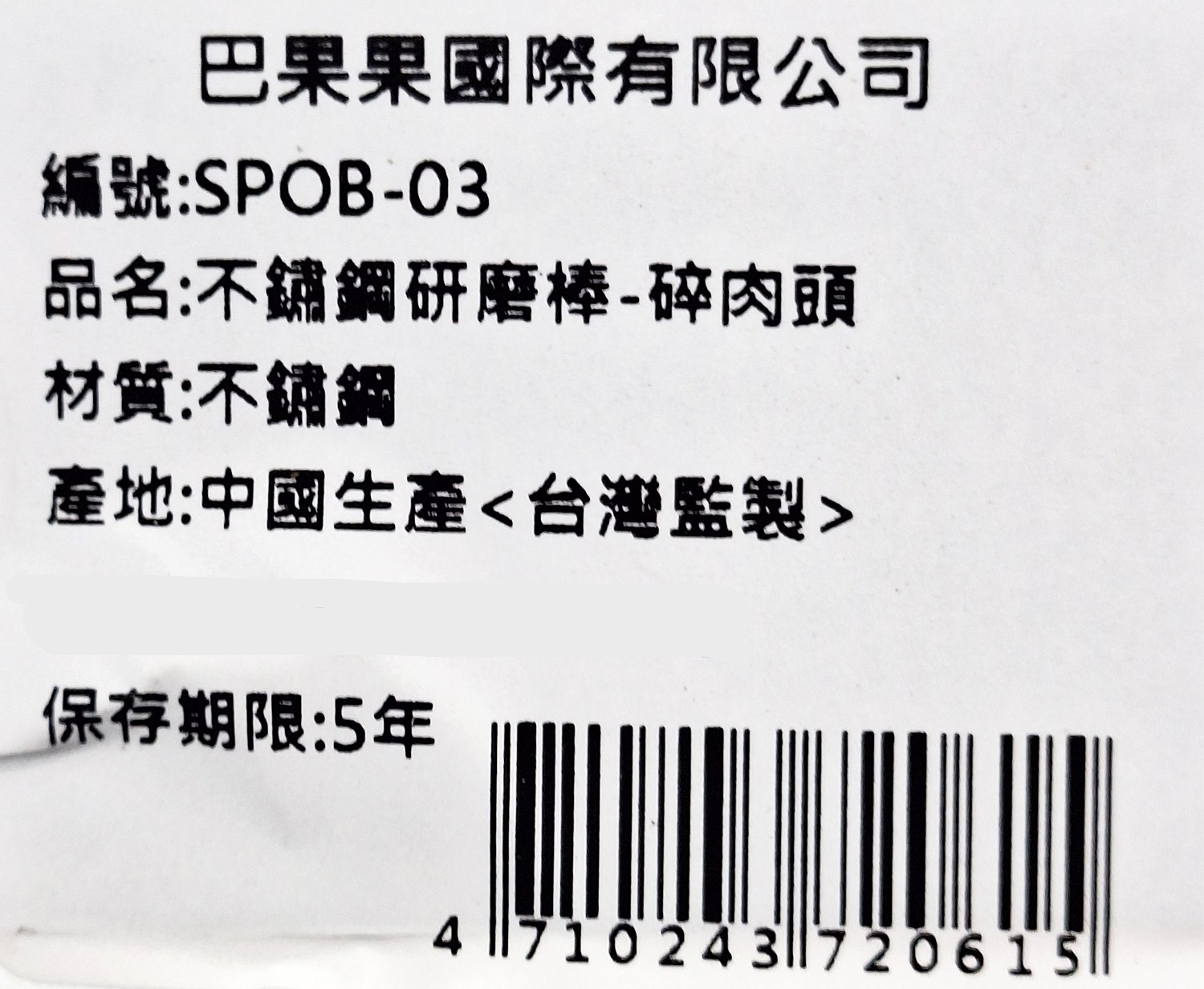 bargogo 巴果果 不鏽鋼研磨棒 碎肉頭, 中國生產 台灣監製, 21.5 x 2.4cm, 1支