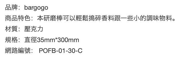 這款壓克力研磨棒是您廚房或酒吧的理想工具,讓您輕鬆研磨香料和調味料,為您的料理增添風味。30公分長、3.5公分直徑的尺寸,握感舒適,操作方便。透明的設計不僅美觀,還能讓您清楚看到研磨的過程。採用高品質壓克力材質,堅固耐用,易於清潔,確保您的食品安全。無論是專業廚師還是家庭料理愛好者,這款研磨棒都能滿足您的需求,讓您輕鬆享受烹飪的樂趣。單支裝,方便收納。