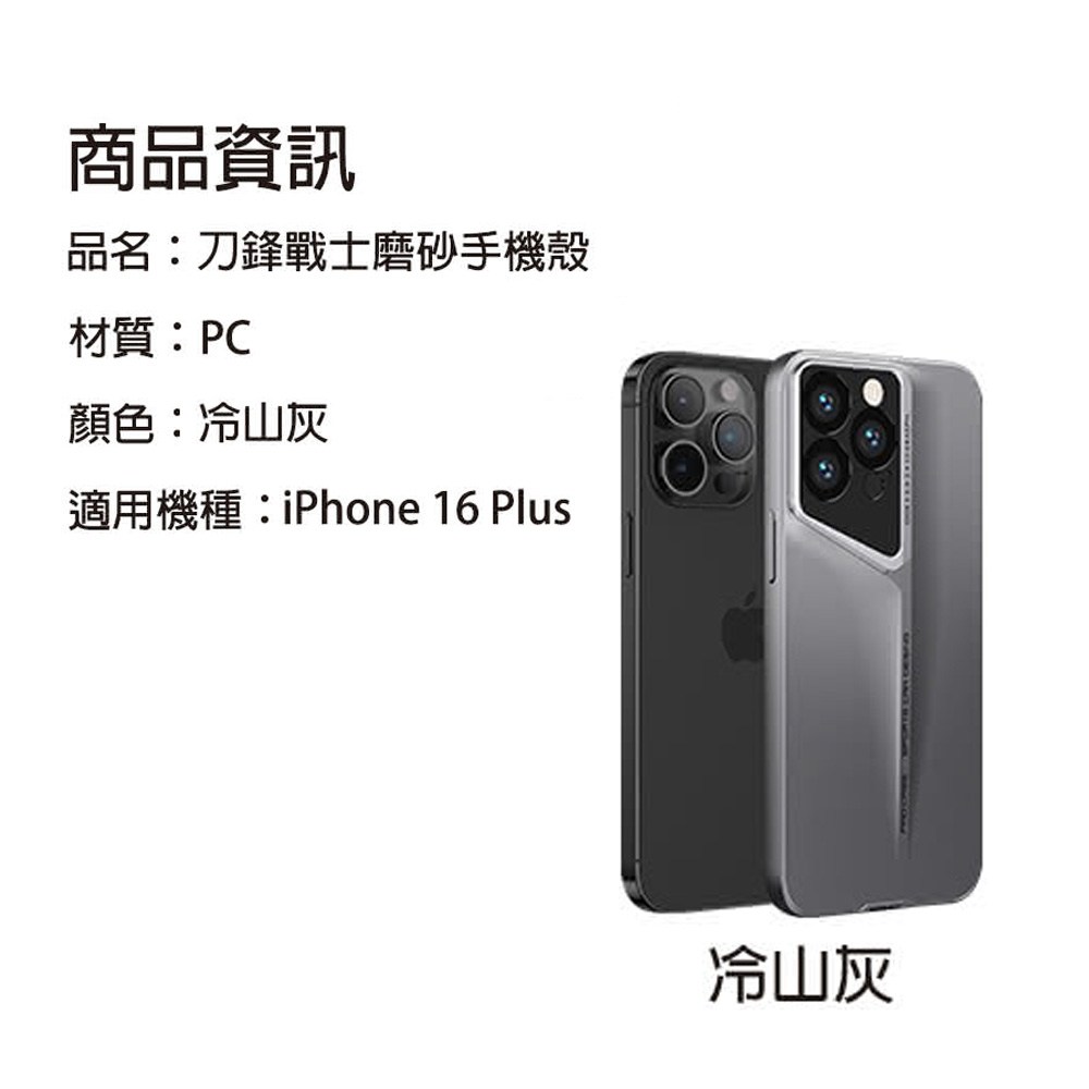 bebehome刀鋒戰士超薄防摔手機保護殼,專為iPhone 16 Plus設計。採用PC材質,打造輕薄手感,冷山灰配色更顯時尚品味。刀鋒設計不僅外觀酷炫,更能有效分散衝擊力,提供手機全方位的保護。精準開孔,完美貼合,不影響按鍵和充電使用。讓您的iPhone 16 Plus在享受極致保護的同時,也能展現獨特風格。
