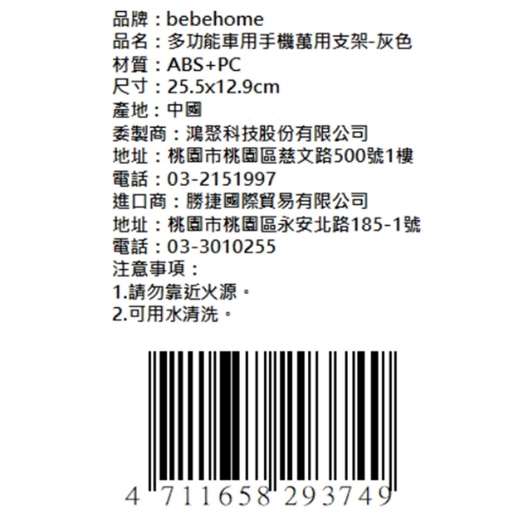 bebehome 多功能車用手機萬用支架, 灰色, 1個