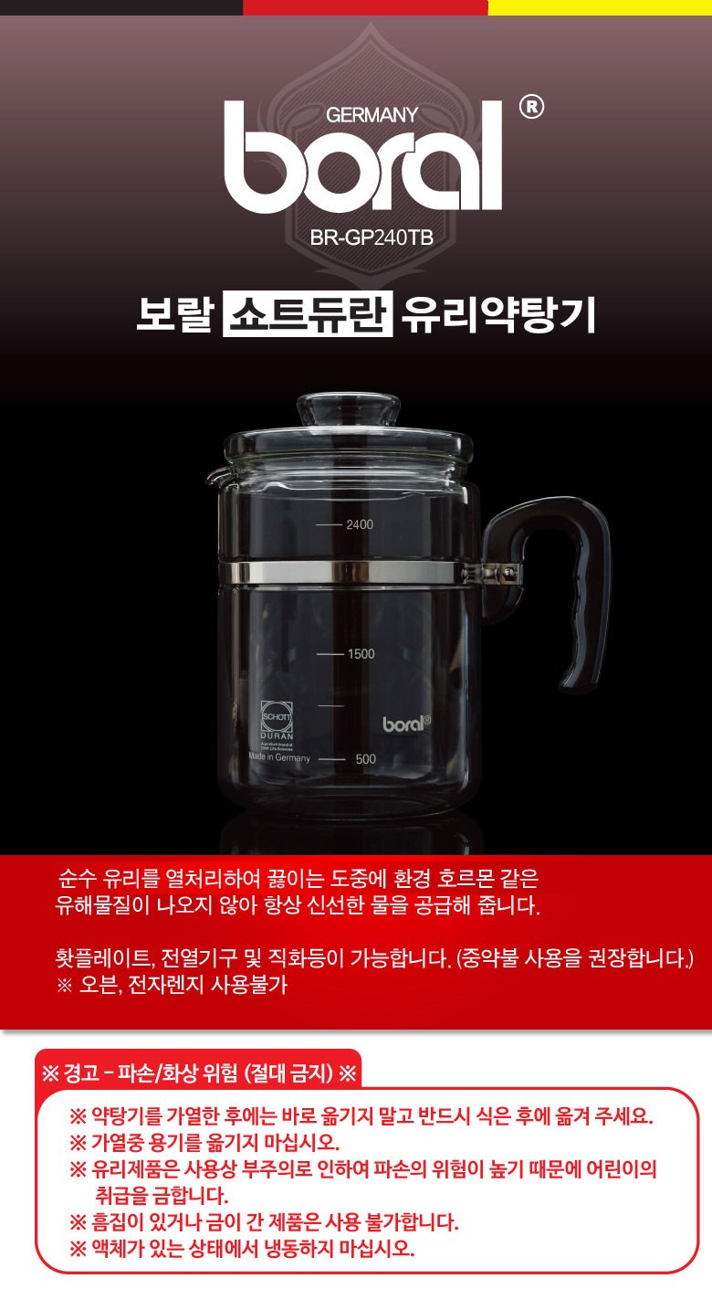 boral 耐熱玻璃茶壺 BR-GP240TB, 1個, 2.4L