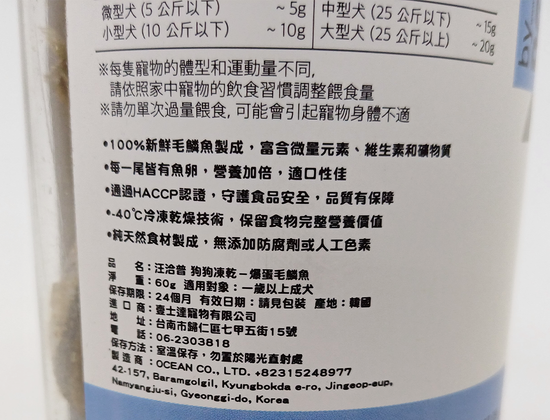 - 爆蛋毛鱗魚富含豐富的魚卵,提供額外營養,讓狗狗健康又快樂。
