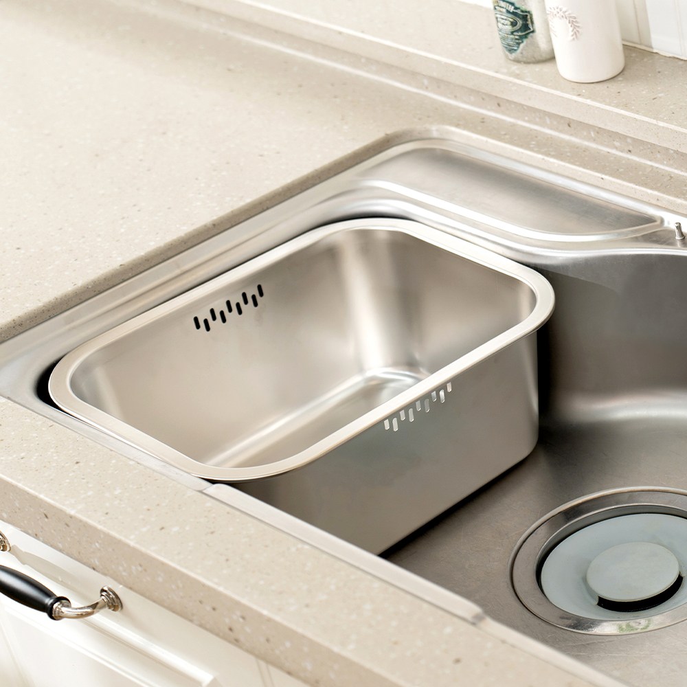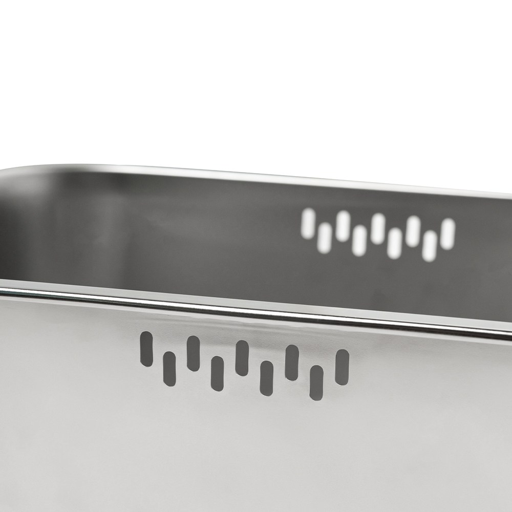 - 兩側排水孔設計,有效防止溢水,保持廚房乾淨,輕鬆處理洗滌用水。
