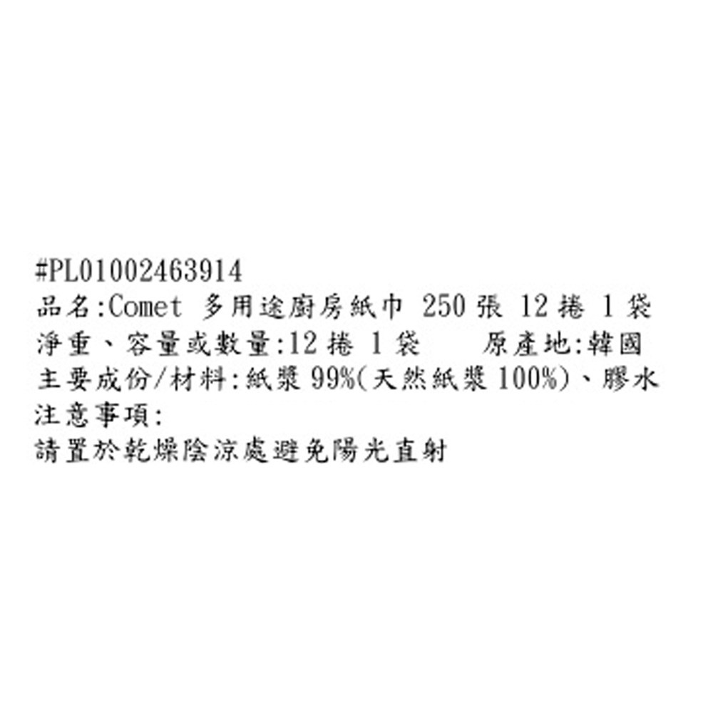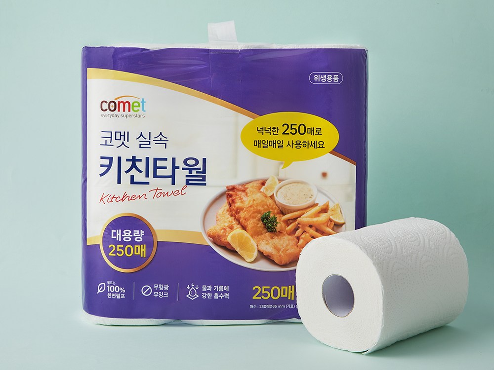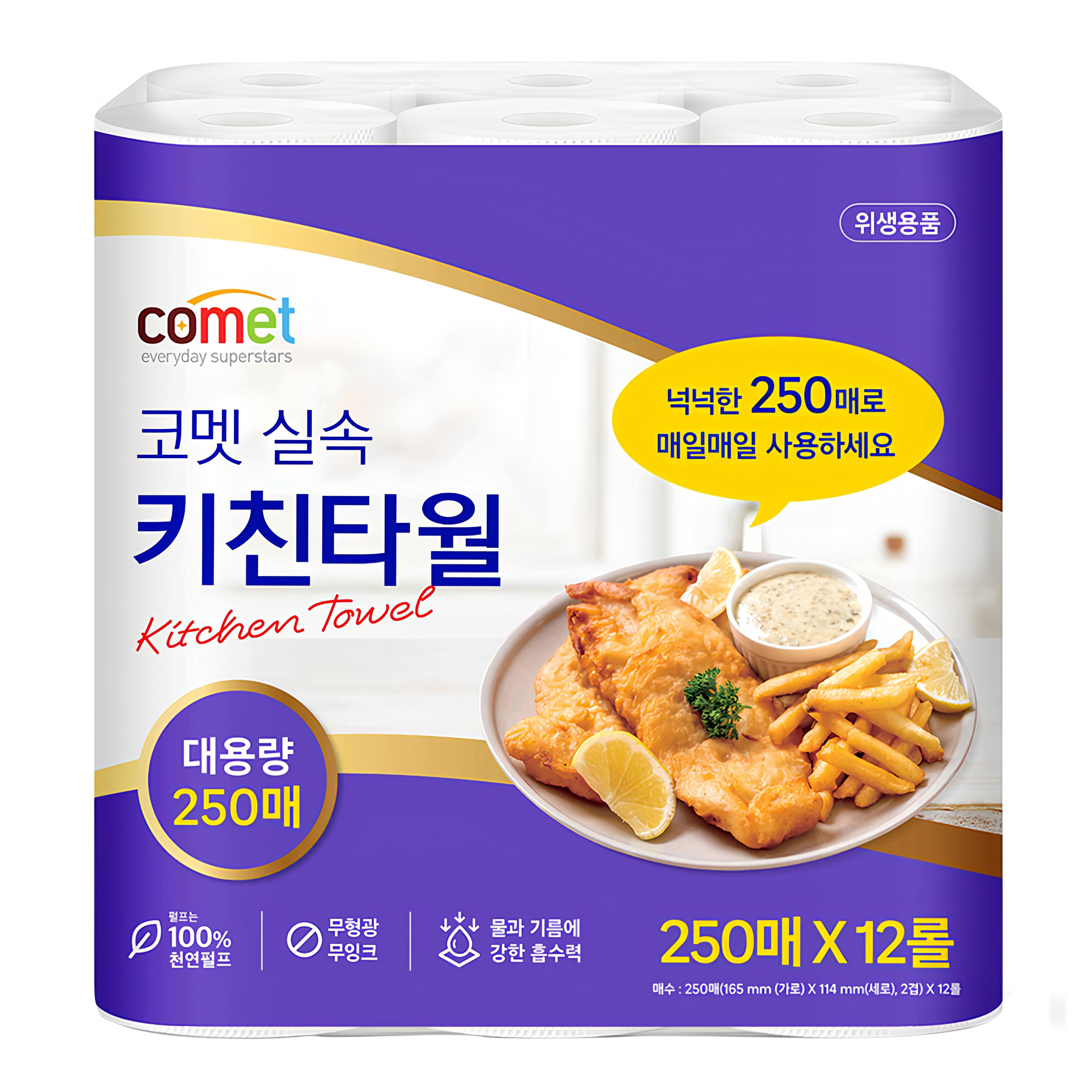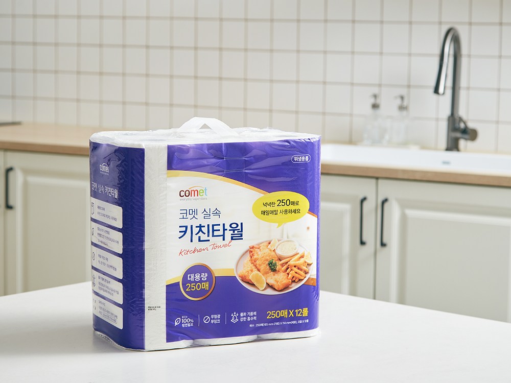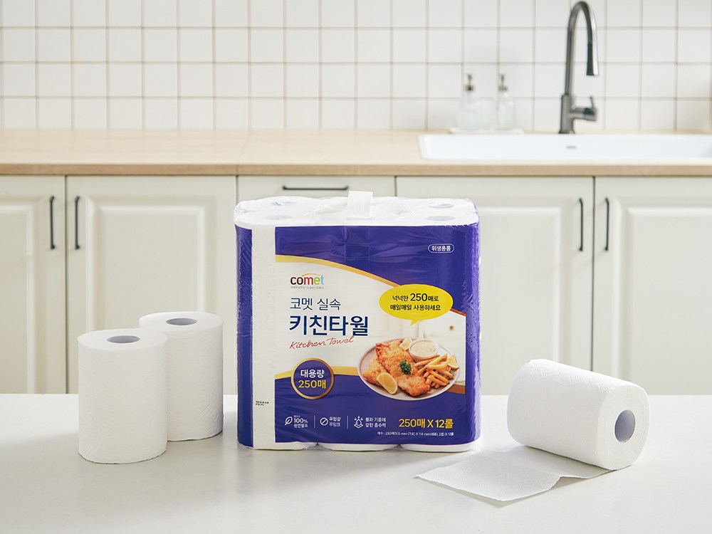 Comet多功能實惠廚房紙巾,是您廚房清潔的好幫手。每卷250張的大容量設計,減少更換頻率,讓您使用更持久。雙層紙張加厚處理,吸水力更強,輕鬆擦拭廚房油汙與水漬。採用原生紙漿,不含螢光劑,使用更安心。紙張柔韌不易破,用途廣泛,無論是擦拭食物、餐具,還是清潔檯面,都能輕鬆應對。讓Comet廚房紙巾為您打造潔淨舒適的烹飪空間。